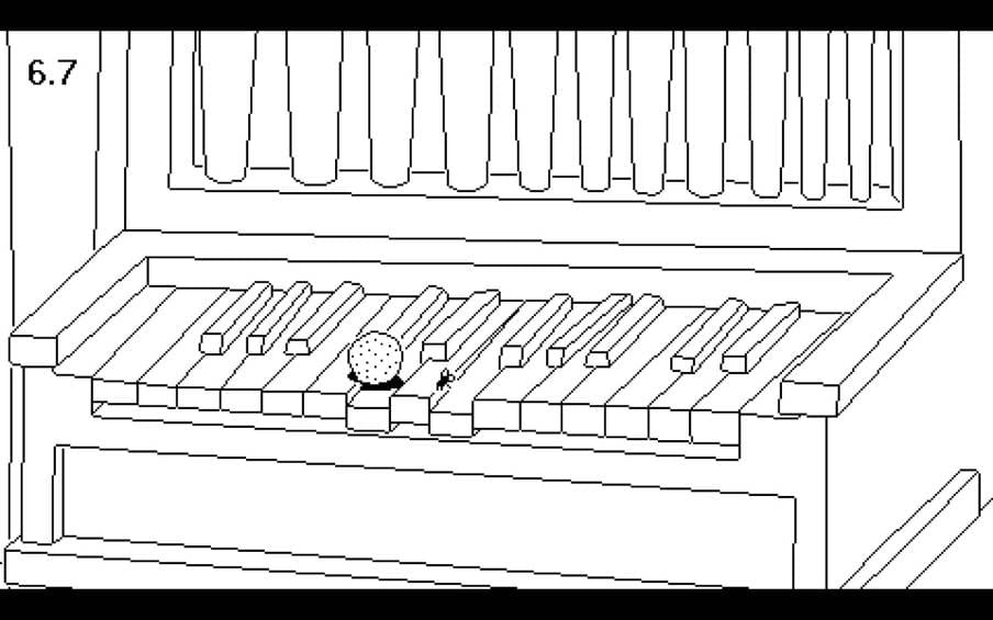 Once up here you can knock a ball down and it’ll land on the piano, push the ball around a little to tick the objective off: