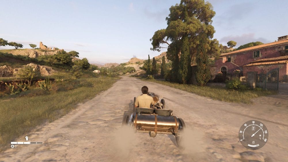 In order to unlock Getaway Driver, you need to travel at least 120km/h for 15 seconds. With how windy the roads are in Mafia: The Old Country, there aren’t too many areas to grab this. Thankfully, there is one section that is quite easy to do so with the right car.