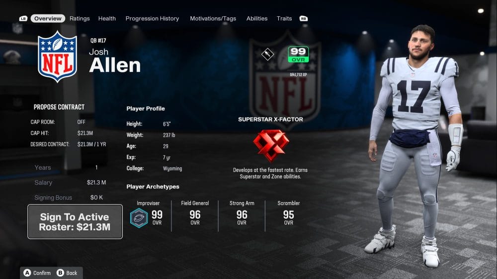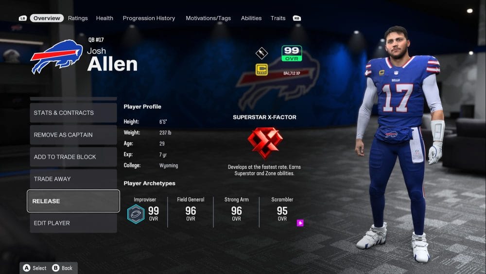 If you want to get this out of the way quickly though select a team with a very highly rated player such as the Buffalo Bills who have a 99 rated QB in Josh Allen.
