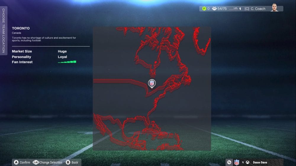 This will bring you to a page with many options. After you've selected relocate you can choose any options you want. I moved my team to Toronto and created an open air stadium, but anything will suffice. Once you select all the options and relocate your achievement/trophy will unlock.