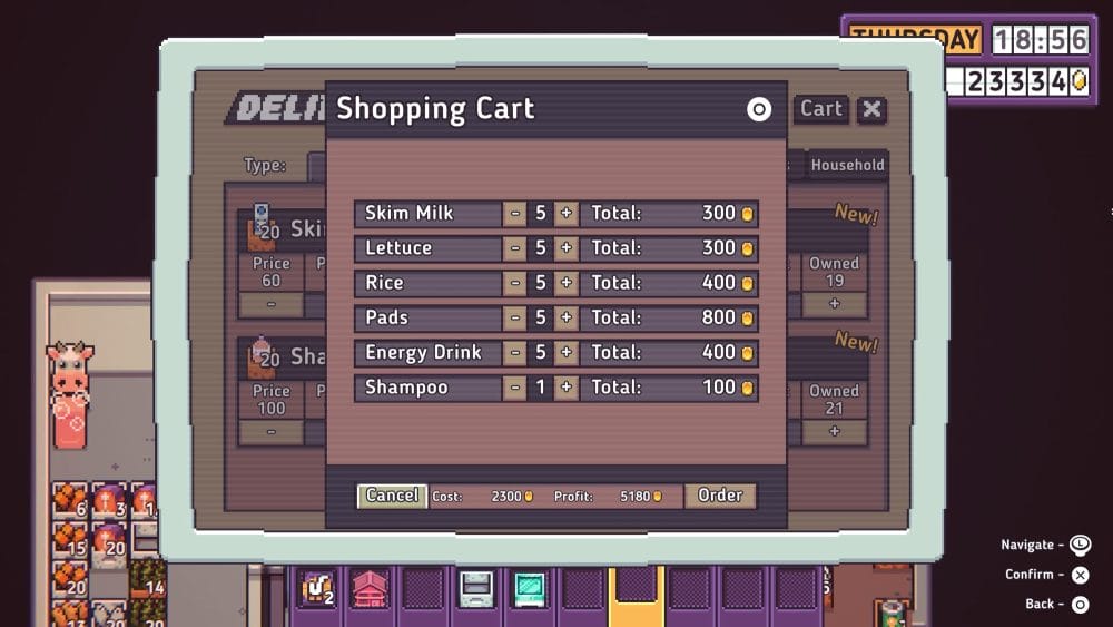 Now, unless you've been super neglectful of your inventory and have your storage room completely devoid of any products, there's a huge chance that you don't need to keep any of the stuff you ordered! Simply follow the instructions, then once the trophy/achievement pops, simply reload the save. This is why I suggested doing it first thing in the morning, so that you won't waste any progress by reloading.