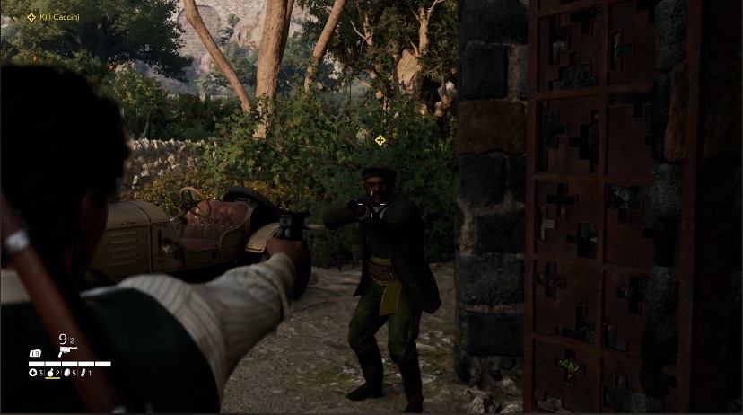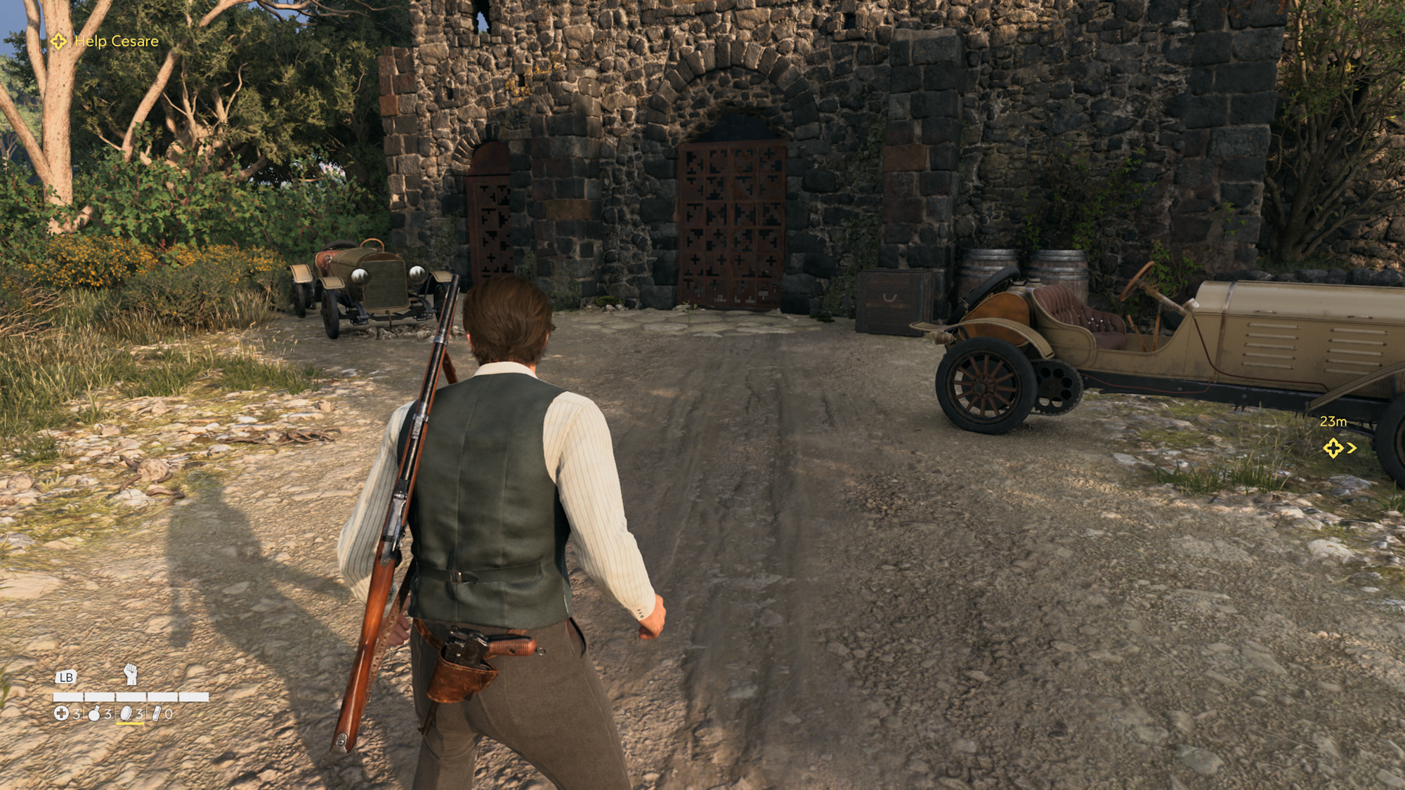 Now while you can just hop in your with Cesare and take your chances of gunning him down in time, there's actually a very simple method. We're not gonna let him get in the car to begin with.