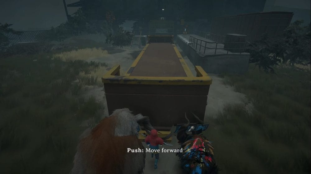 When you reach the train depot, you want to push the trolley with the help of your herdling.