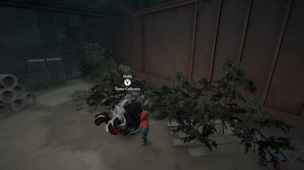 You can’t reach the Calicorn without knocking over some trash (who put these up?), startling it. The Calicorn will run, but won’t get far.
