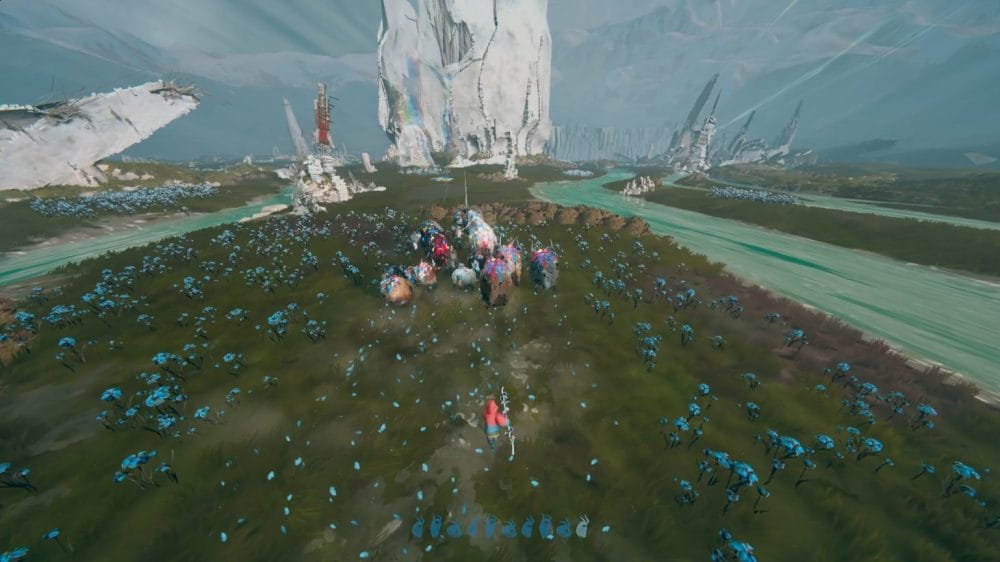 After gathering up your herdling at the beginning of the chapter, you’ll push over a wall to clear your path to some giant ruins.