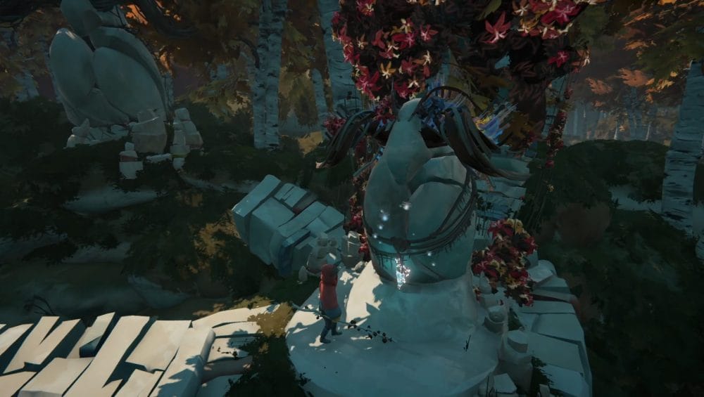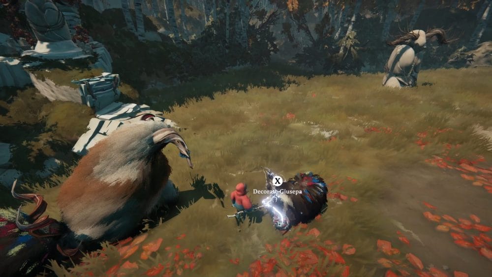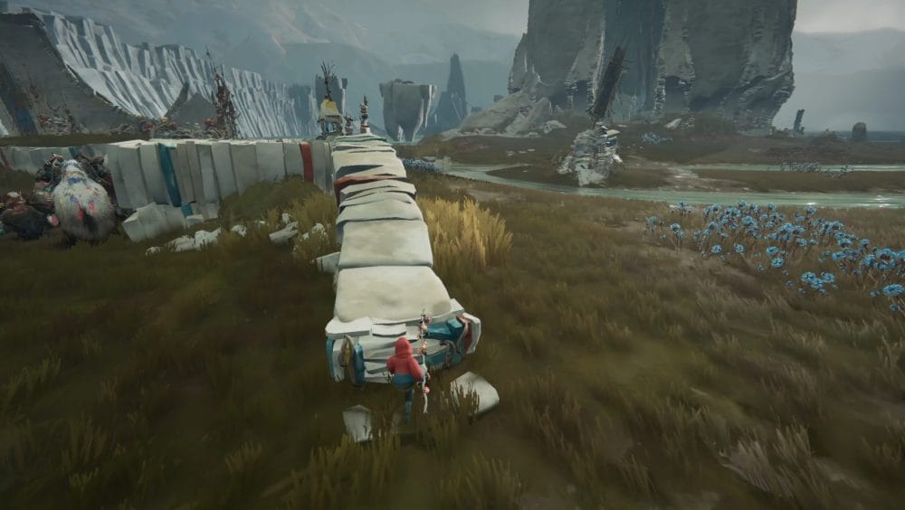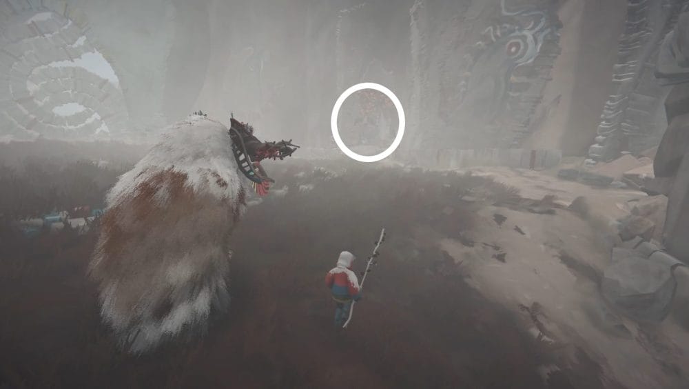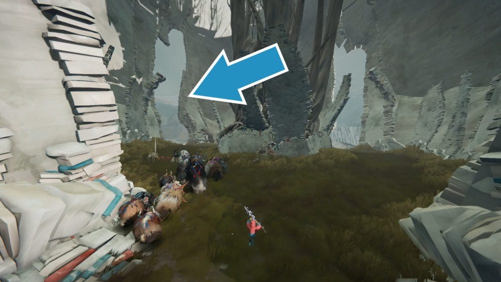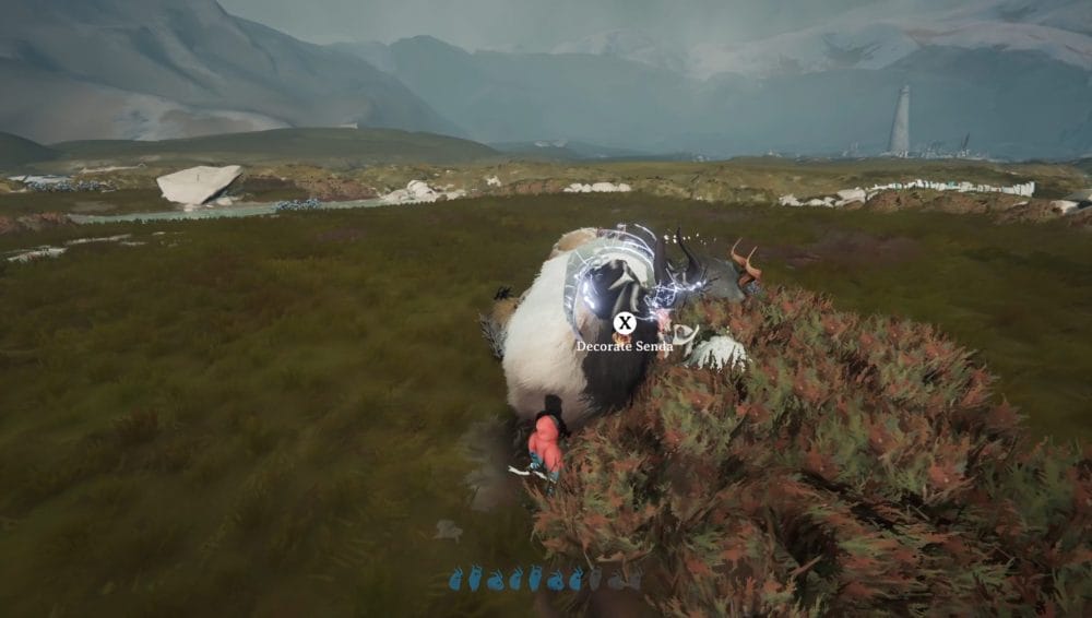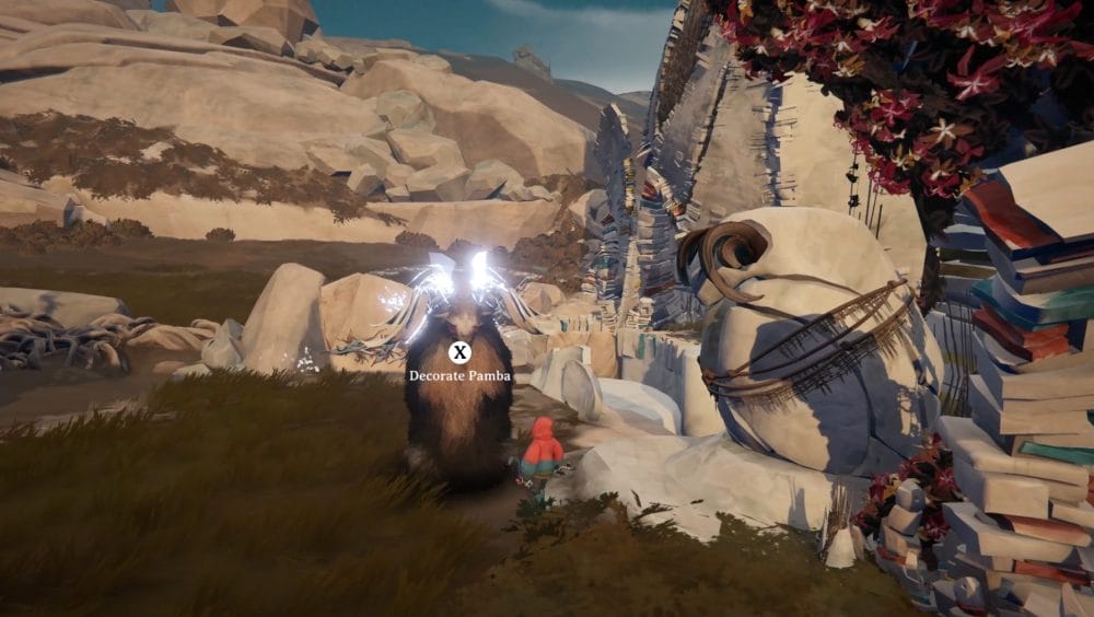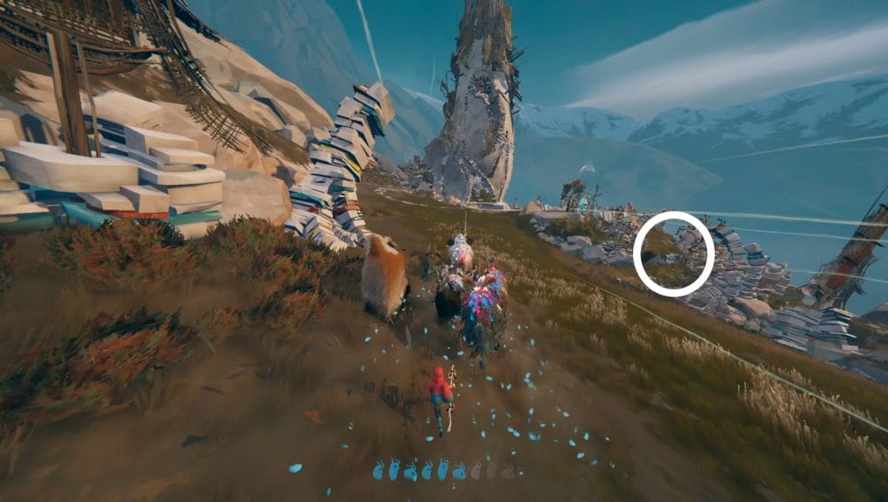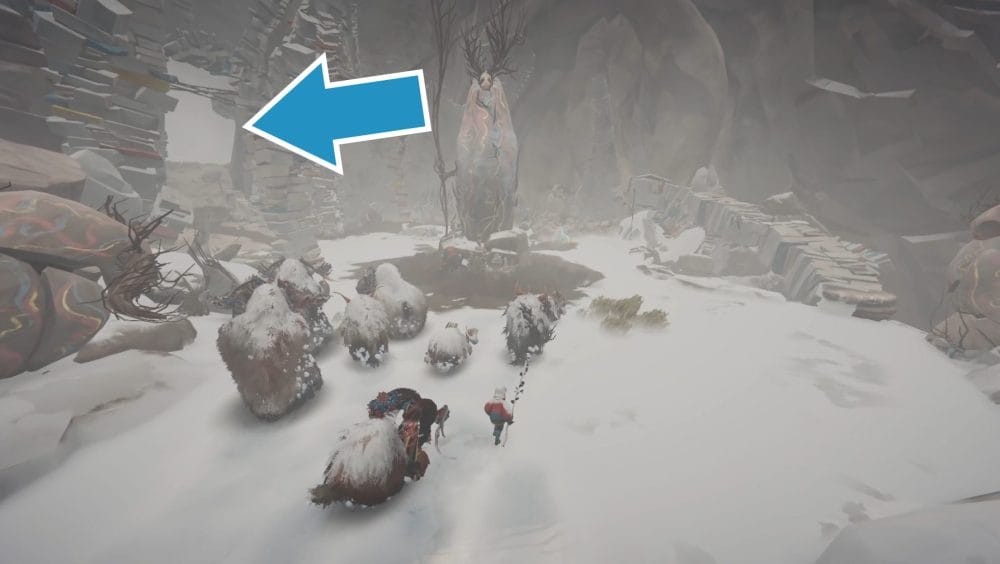 As you collect your herdling back together, you’ll make your way over to a set of ruins where a Calicorn statue with the harness stands near.