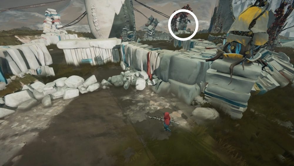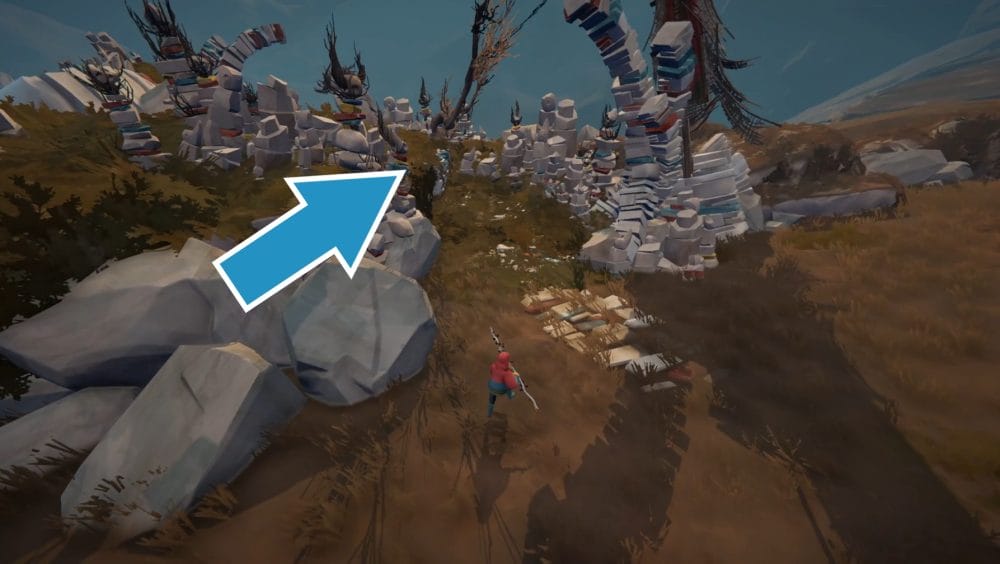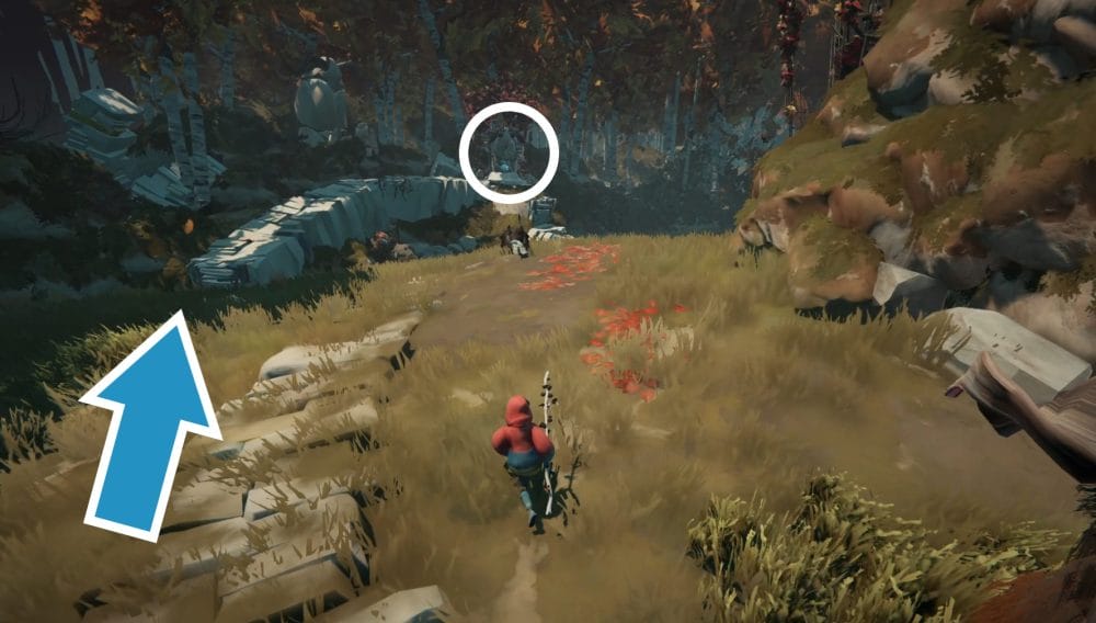 With the area clear, you can now search the area in peace. Look for a narrow stone path to the right of the arch you entered through.