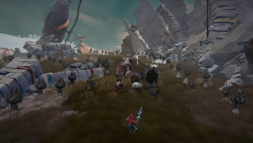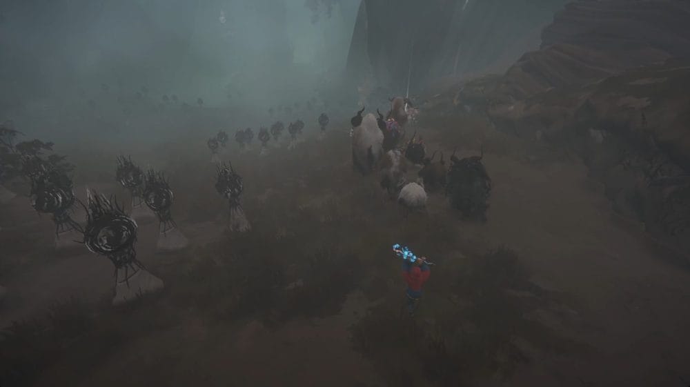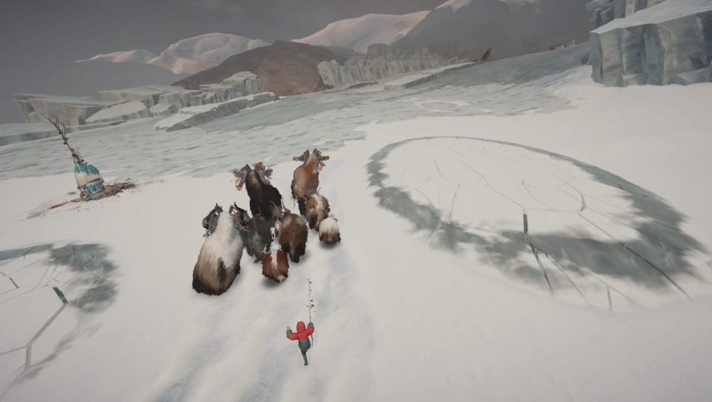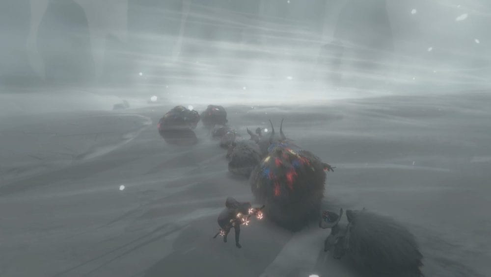 In Chapter 7, the Snowbound Pass, you need to guide your herdling around more crevasses, all while dealing with heavy gales that can push your Calicorns. To stop this, tell them to stop, and your herdling will brace itself against the harsh winds.