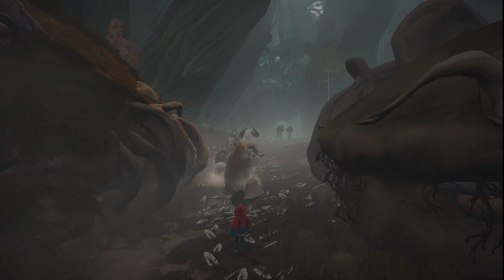 After the campfire rest stop, you have to guide your herdling through several stealth sections to avoid alerting a giant, ravenous bird to your presence.