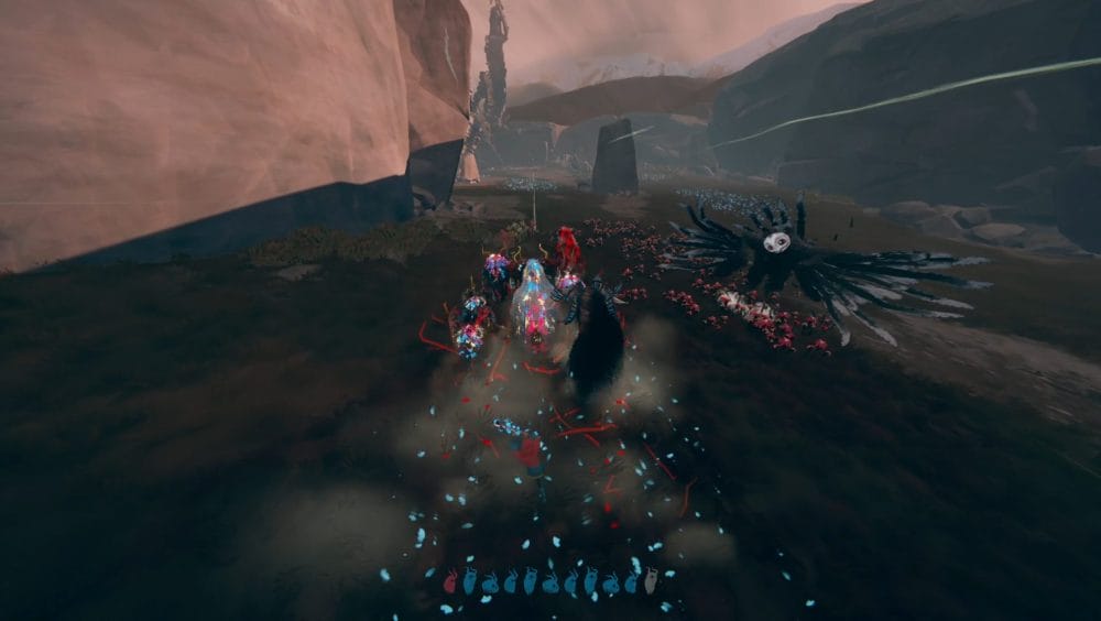 You will reach a point when you have to stampede through a wall of totems to progress, which leads to a stampede/chase sequence where you have to avoid the giant birds as they land in front of you.