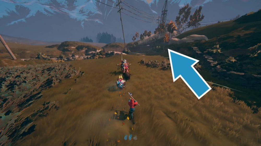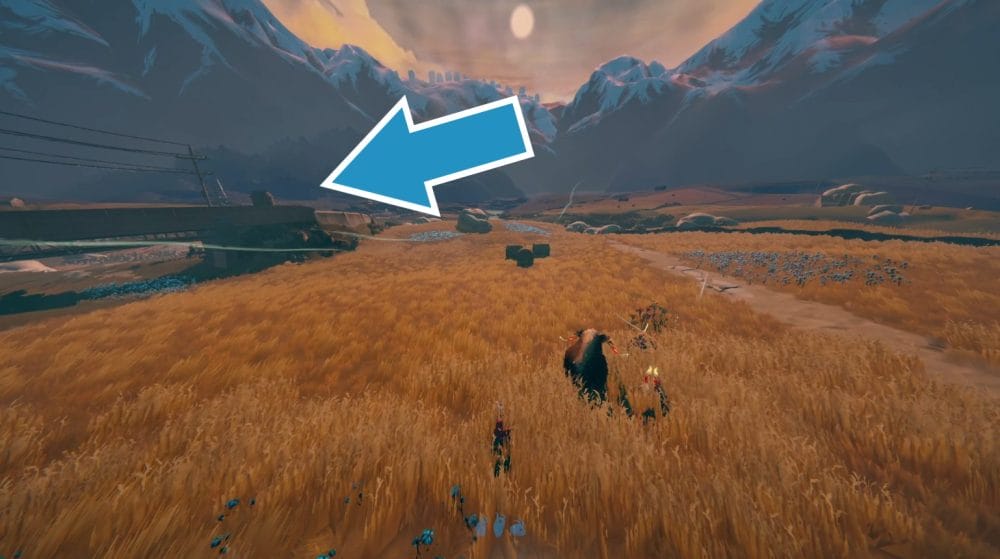 Close to the bottom of the hill, you will turn to the left to head towards the train. You want to aim for the tunnel it enters.