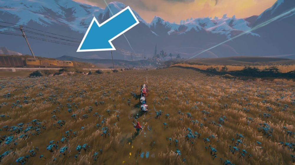 Eventually, you’ll reach a wide field of blue flowers, which will keep your stampedes topped up, so just keep going. You’ll know you are making good time if the train overtakes you now.