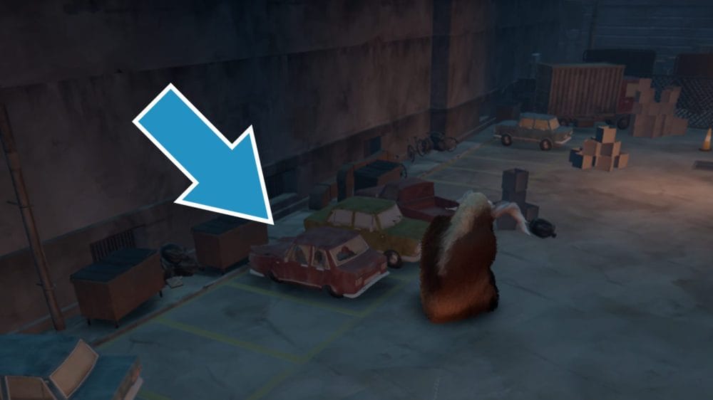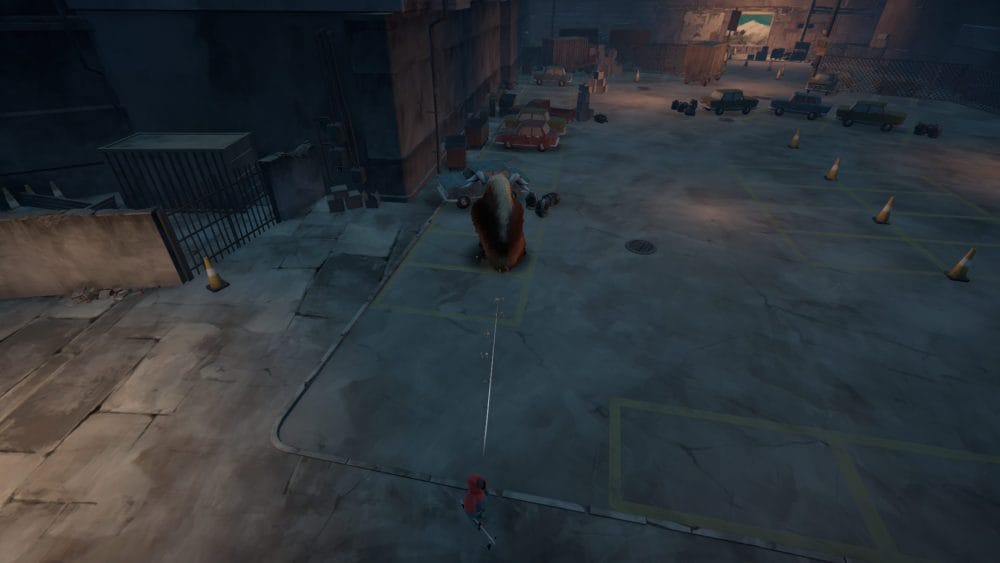 Guide your single Calicorn through the trash bags and into the next area, a large car park littered with traffic cones and vehicles. (The traffic cones are part of the Careful Pedestrian achievement.)