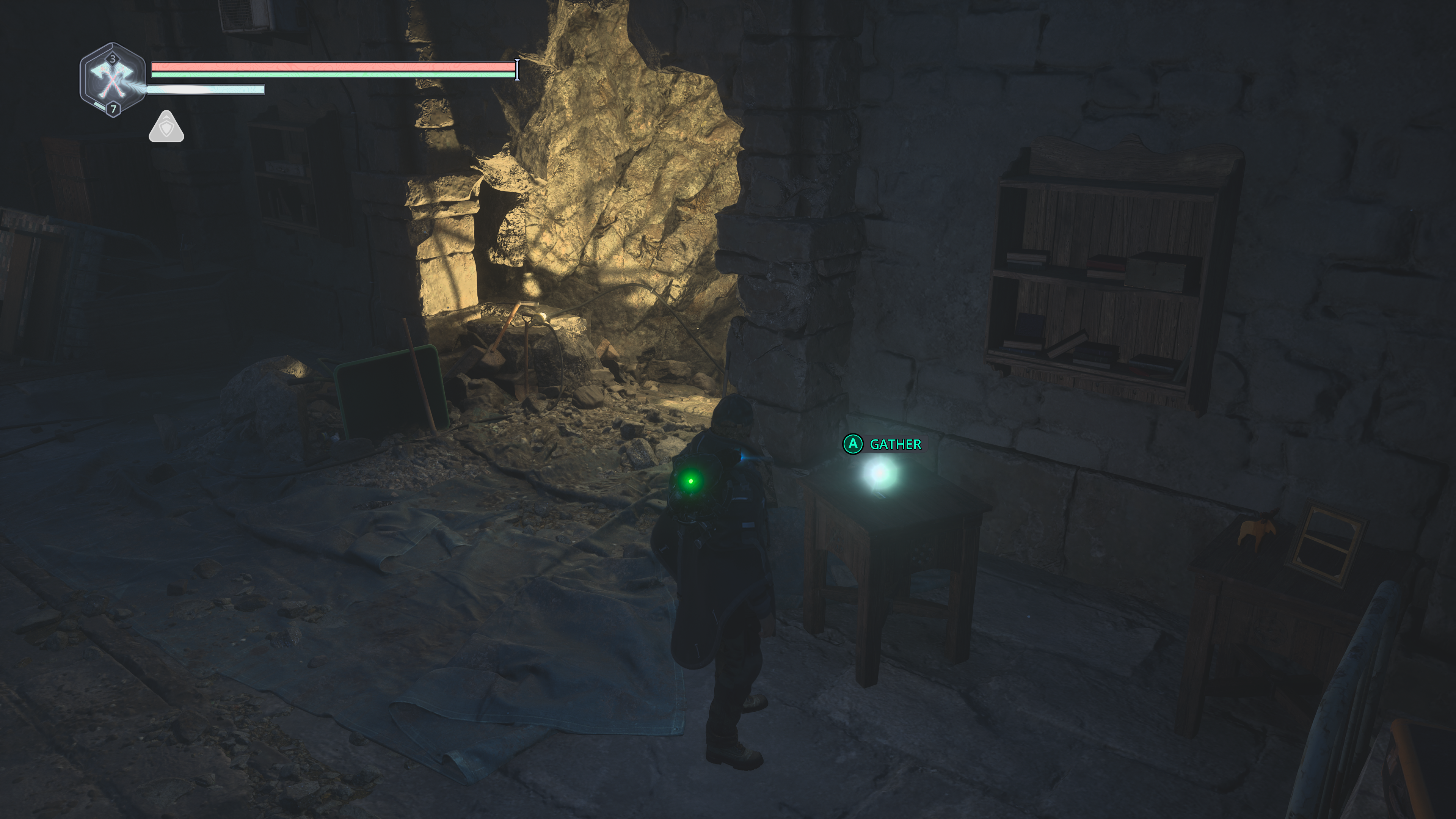 As you enter you’ll be presented with quite a lot of things to consider in different areas of the hideout. First things first, you’ll need your ceramic flowers. Head through the hideout and head through the destroyed hole in the wall and down the ladder. It’s to the right of the armour that’s on display.