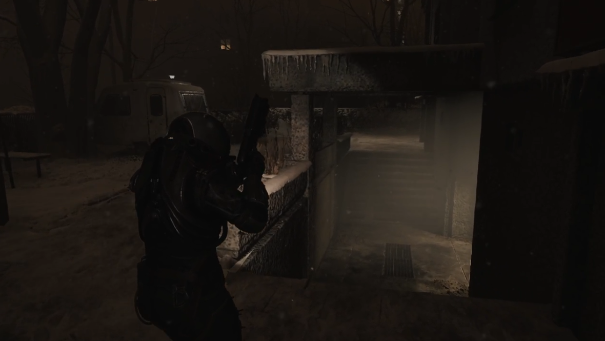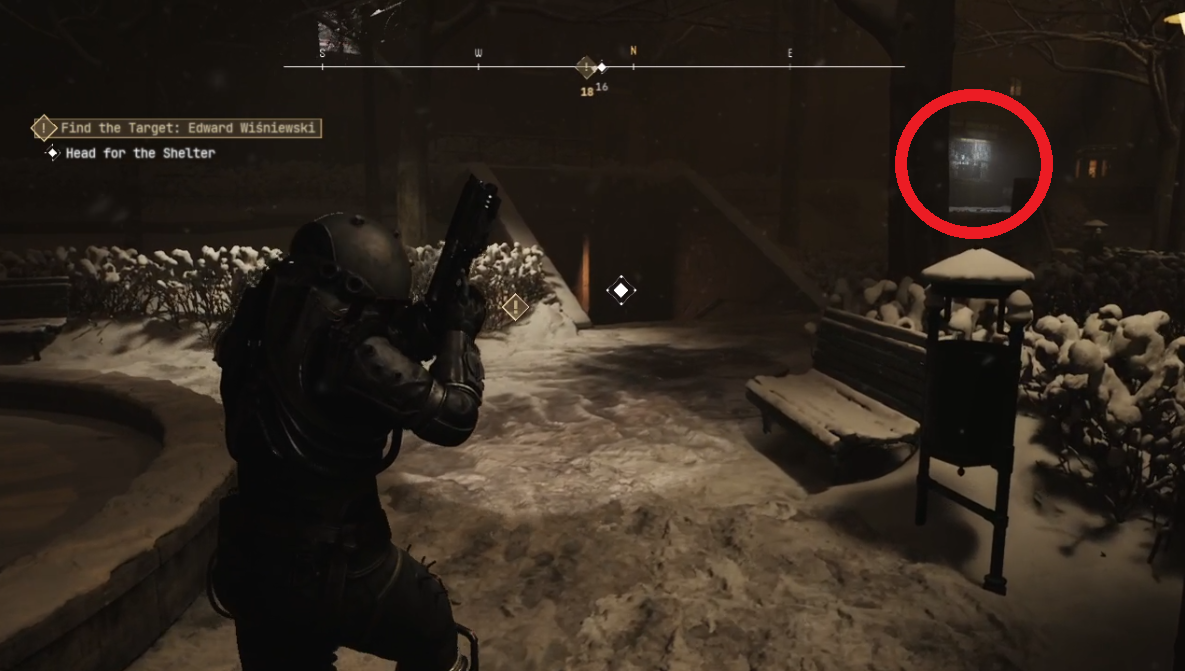 Karol is found during your first dive back to 1980s Poland. You want to leave the apartment block and head across the courtyard to a lit-up magazine stand.