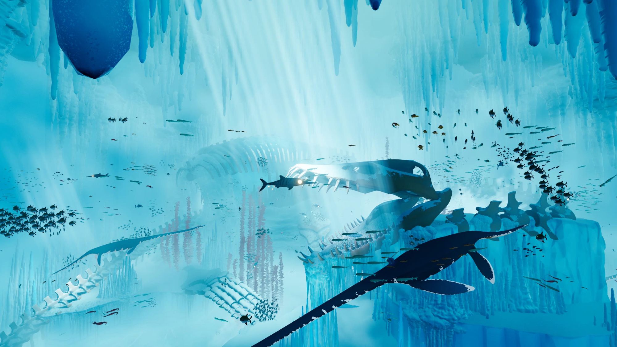 After cleansing the huge cavern of the skeletal creature, you can once again use the red kelp to float up and gain some height in order to get on top of an Elasmosaur.