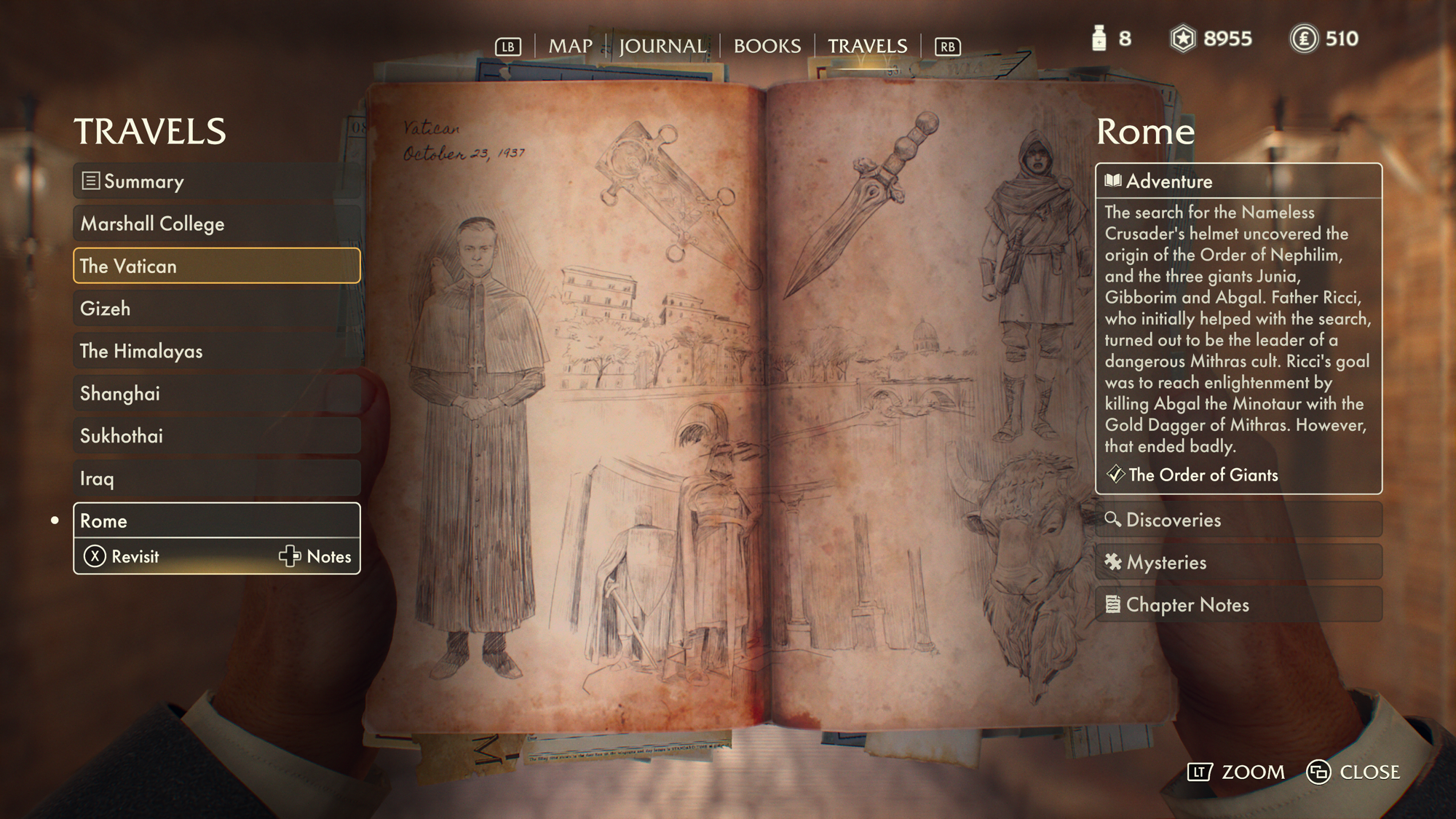 However if you are using the revisit feature and it is putting you back at the Villa Pia you may struggle to find your way back to Rome. The game does a terrible job of leading you back from here. Thankfully though you can return, it just may take some work.
