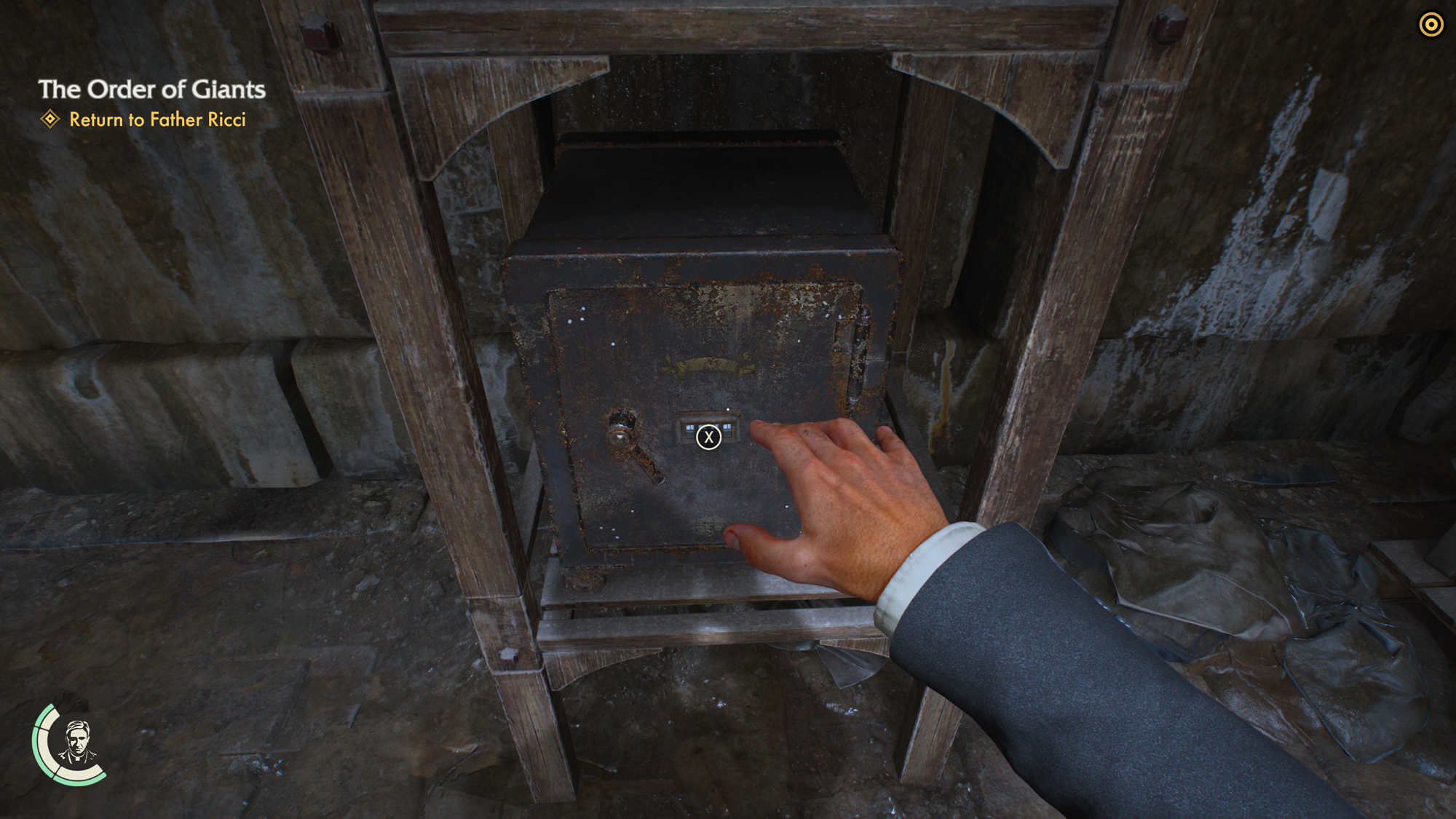 The second artifact is found in the sewers just below Father Ricci’s office. Head down the stairs and into the long hallway. On your right hand side a couple steps after getting down here you will find a safe on a shelf. The code for the safe is 5742. Open it to find the artifact.