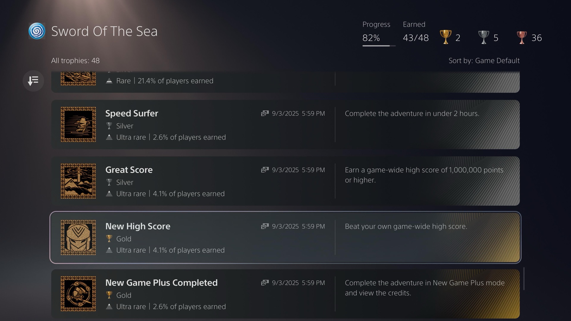 *Note: The final trophy associated with collecting Shells, called "Water Whisperer", won't be attained until you've purchased all the Vendor's items, which requires 5000 for the final item. This will most likely happen in your New Game Plus Playthrough, which is also required if you are hunting for the "New High Score" and "New Game Plus Completed" trophies.