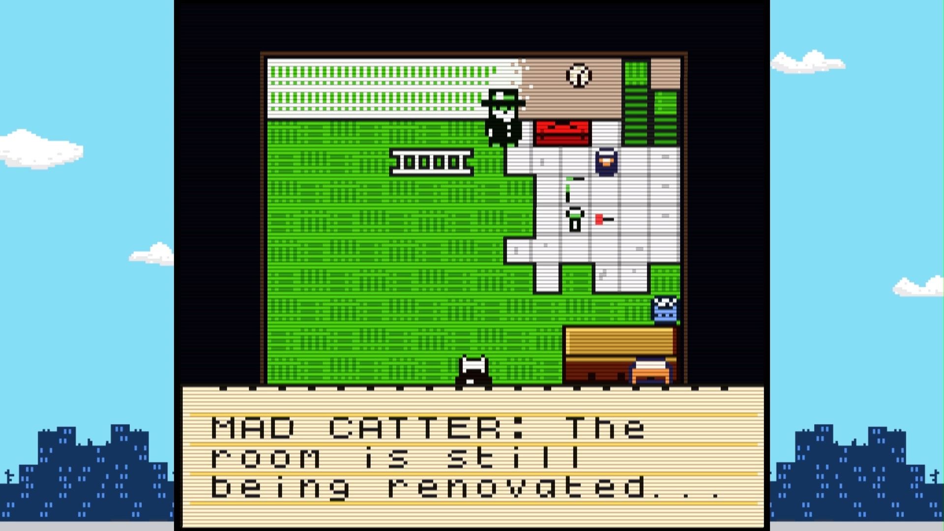 Inside, you'll see the Mad Catter flustered with ensuring that the room is in tip-top shape, just for you. However, it isn't but I think he's still really proud that you've managed to solve his puzzle once again. Grab the statue arm on the ground, pop your achievement, and continue on with the rest of the case!