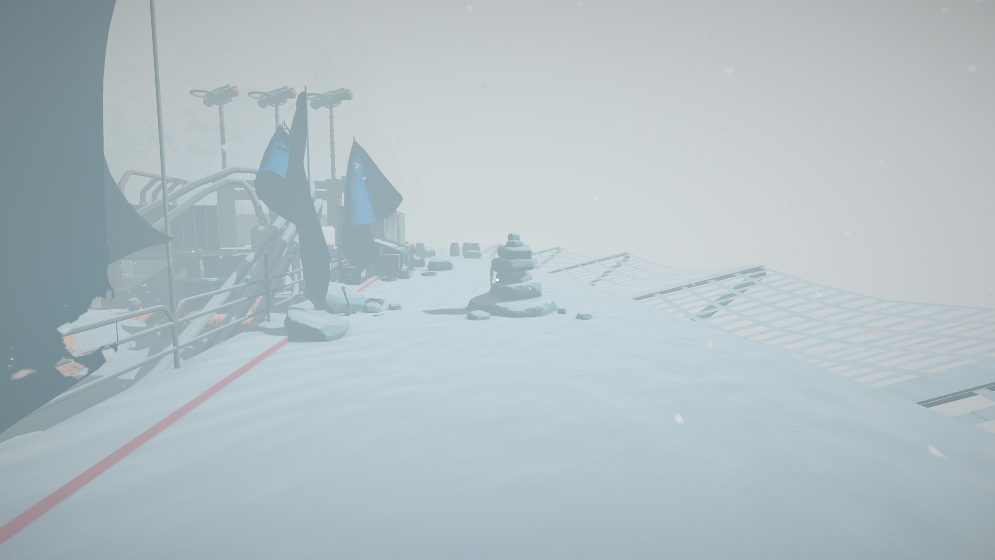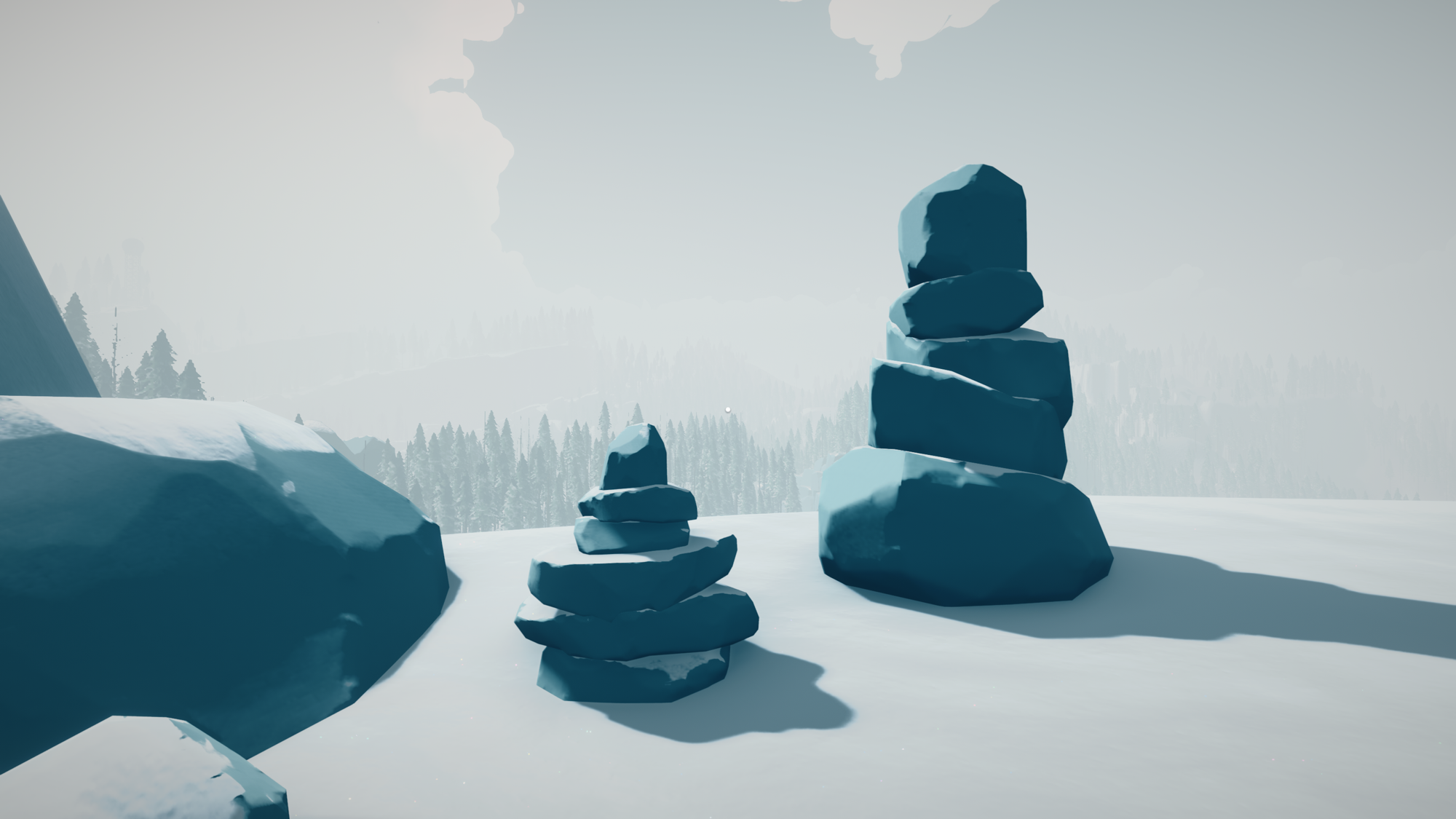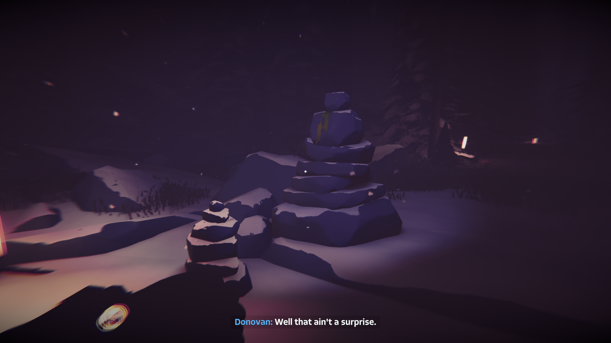 During day 4 after finding the road you will walk down it a fair bit. It will eventually turn back to being snow covered and you will see a sign that says "Don't Stop On Self-Heating Nodes". To the left of this out on a cliff will be another cairn.