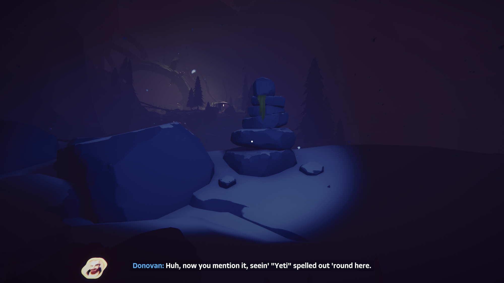 Moving past the big tree up the path to the right, follow the lights and you will eventually run into a cairn on this path.