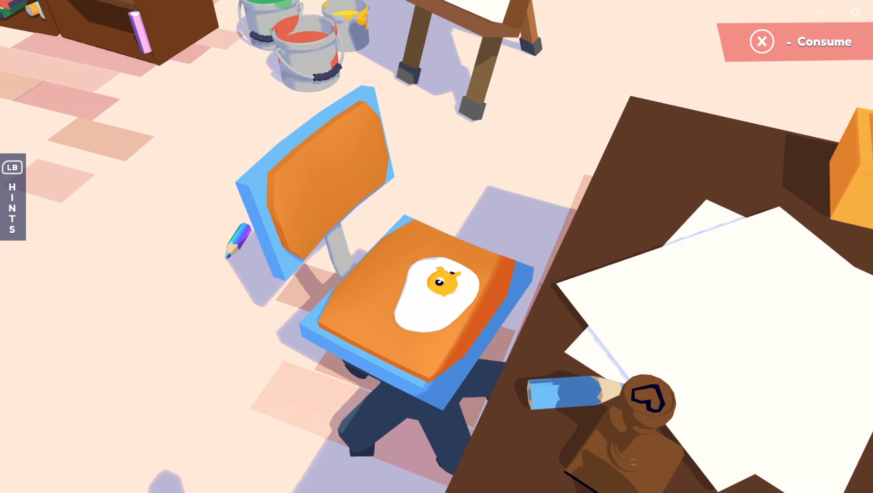The art direction of Henry Halfhead is colourful and approachable, but where it shines is when Henry becomes another object. I cannot imagine how much fun the developers had designing Henry as each of the hundreds of items he could be, from tomatoes and eggs to chairs and beds. I was always curious to see how Henry would look as a new item, and I can't think of a time when I was disappointed, but I can remember a couple that made me chuckle.