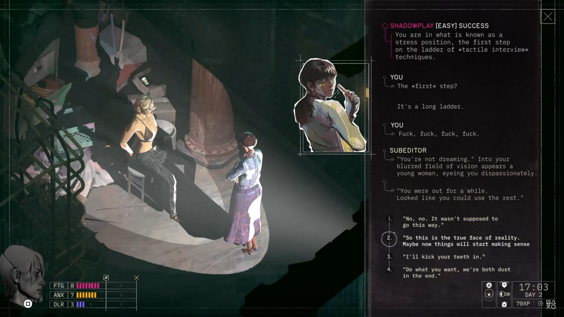 The game trailer showed us just a bit of traversing the world and finding our way around the city. Some of this may also look familiar as the art and design remains in the style players are familiar with from Disco Elysium.