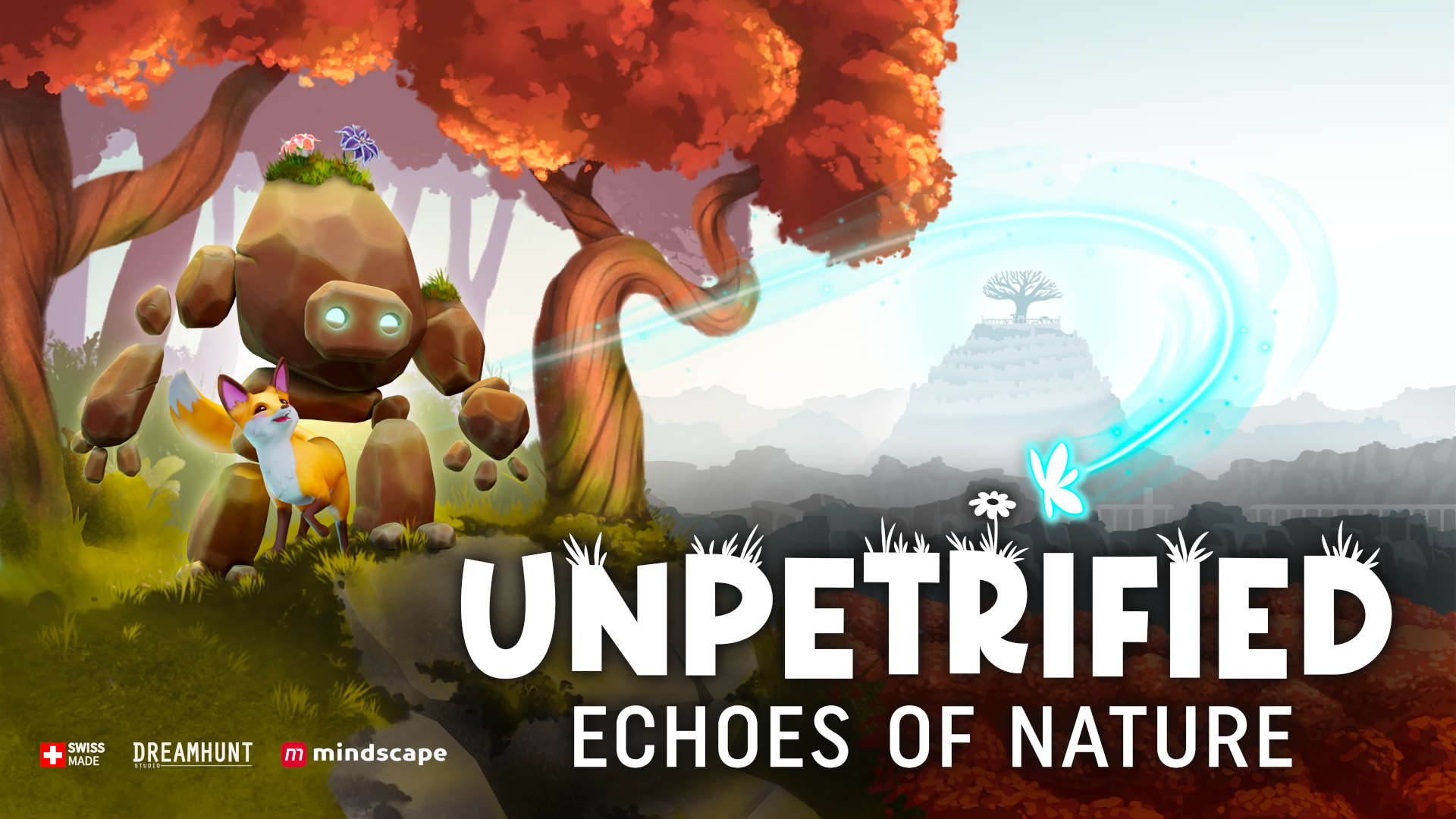Unpetrified: Echoes of Nature is a story-driven adventure game that follows the journey of an unlikely duo, a stone golem and a young fox, as they explore a vast and colourful world of seamlessly blended biomes. Walk and roll around as the golem, meeting cute animals, solving environmental puzzles, uncovering ancient ruins, and finding meaningful collectibles.