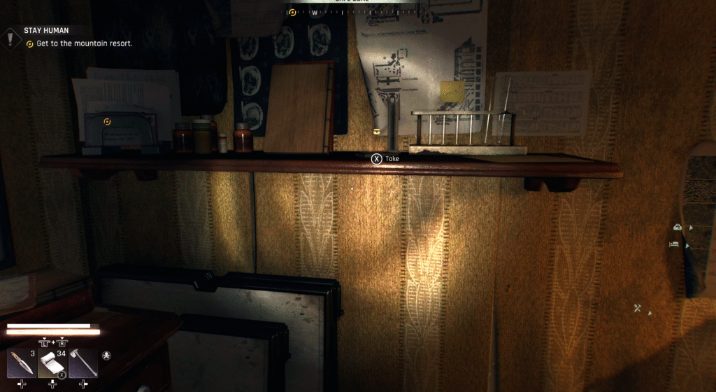 There are several achievements / trophies that relate to getting different types of collectibles. There’s also the ‘Cabinet of Curiosities’ for finding them all. To spot a collectible in the game, use your Survivor Sense to highlight points of interest in the area. Collectibles can be spotted by the orange chest, see below.