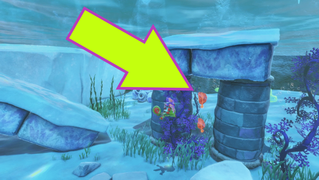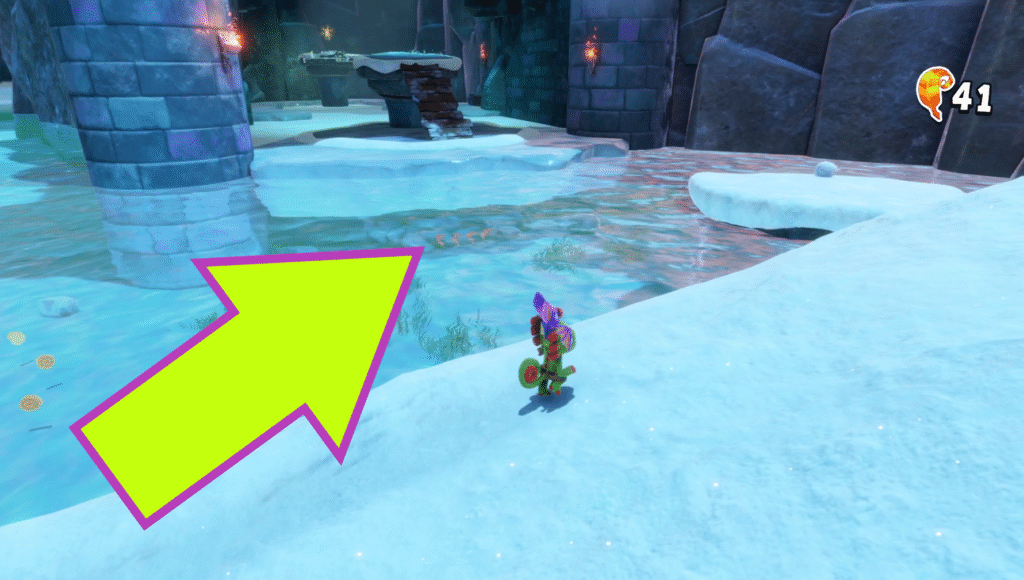 Jump into the water where the snowman is and look for some steps under the water. On one of these natural steps are three Quills to collect.