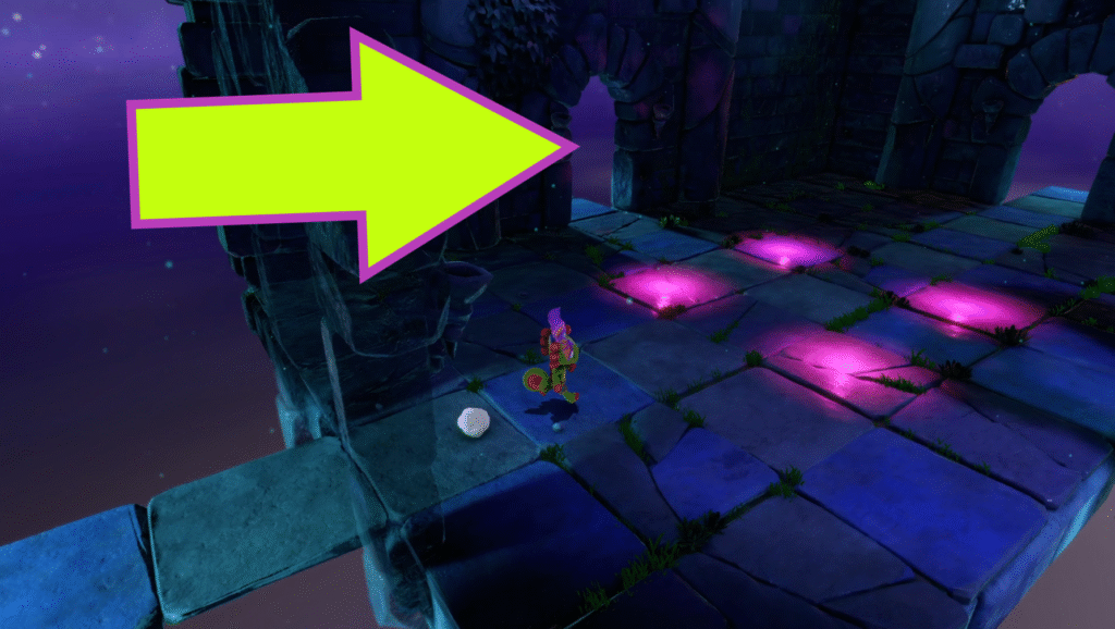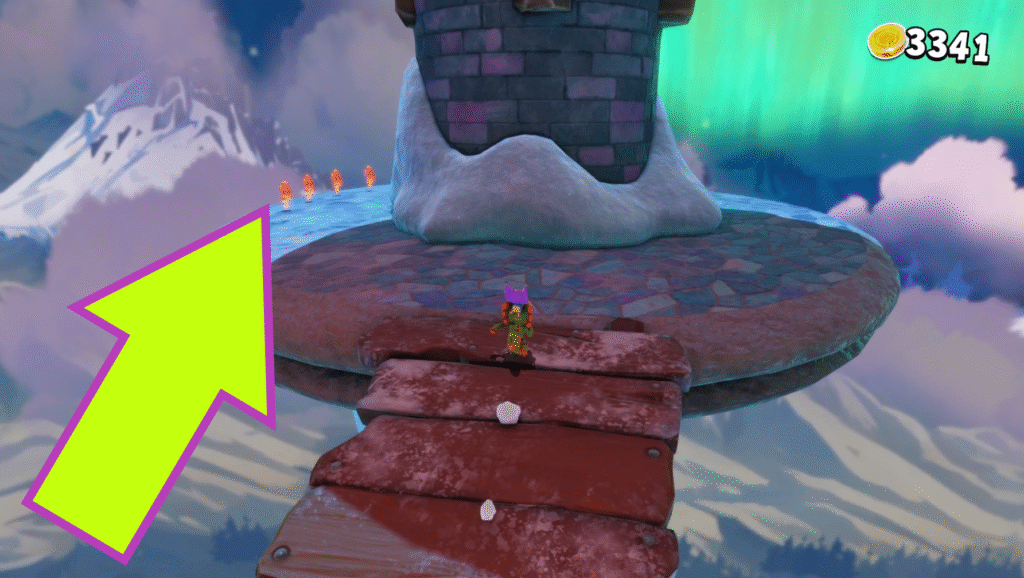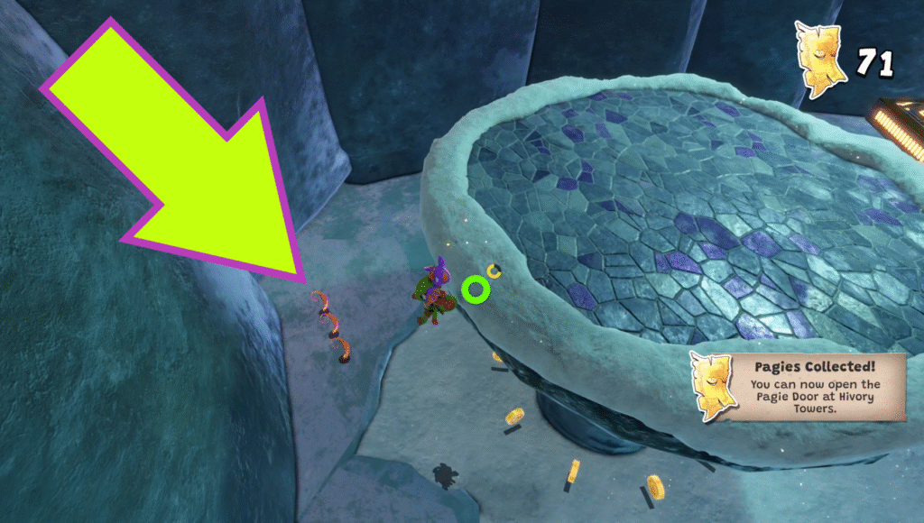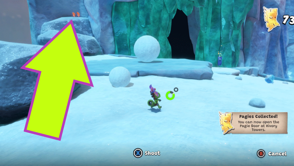 You’ll reach an obstacle course with a Pagie at the end of it. During the obstacle course, you’ll come across 3 Quills on a platform.