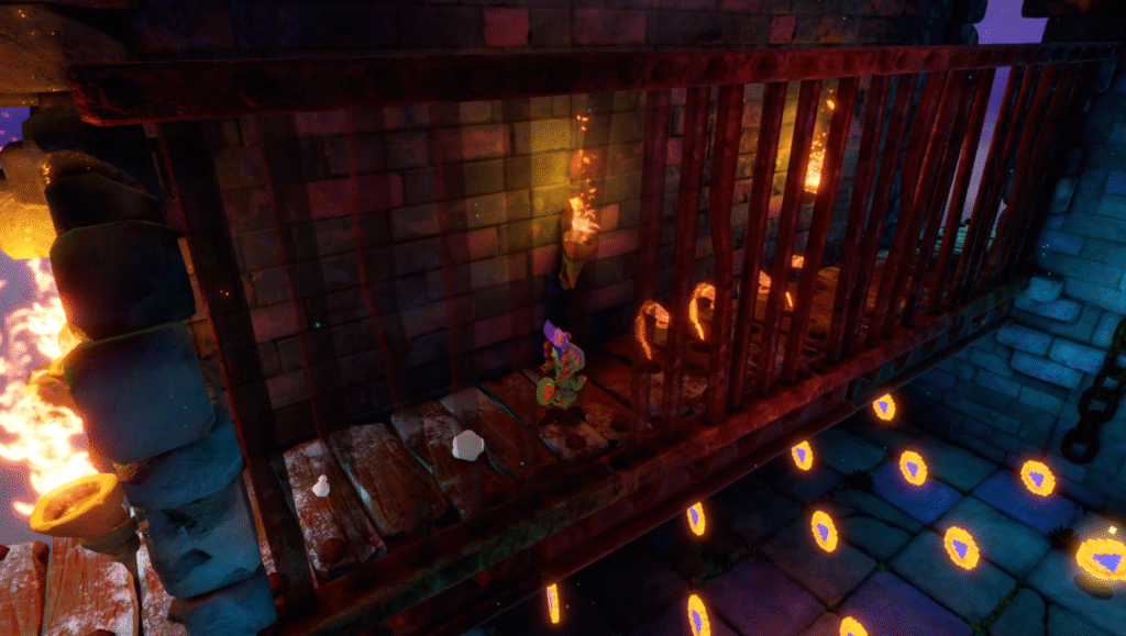 Head back to the room with the metal bars and ride the steam current to reach another door. Smash the large crate in this room to reveal a Bomb Plant that you can use to blow up the molten blocks. Behind one of them are three Quills to grab.
