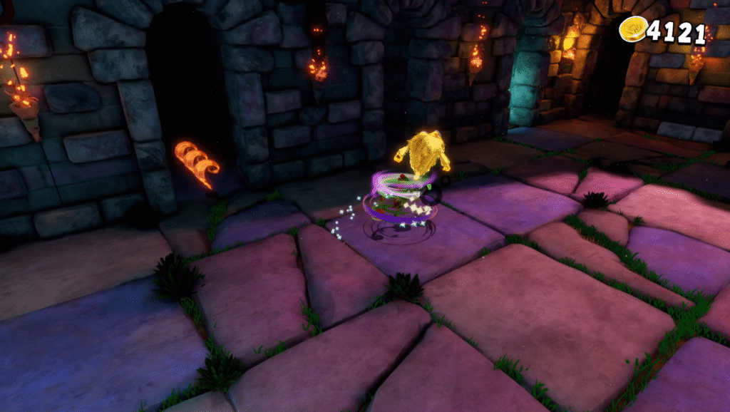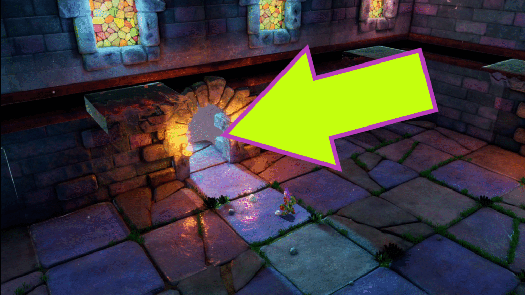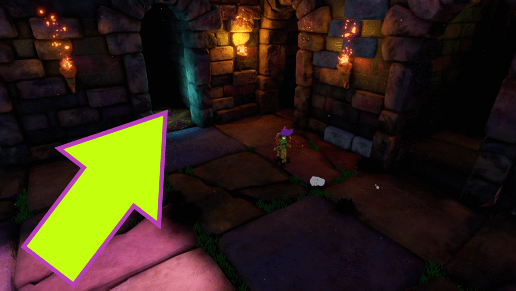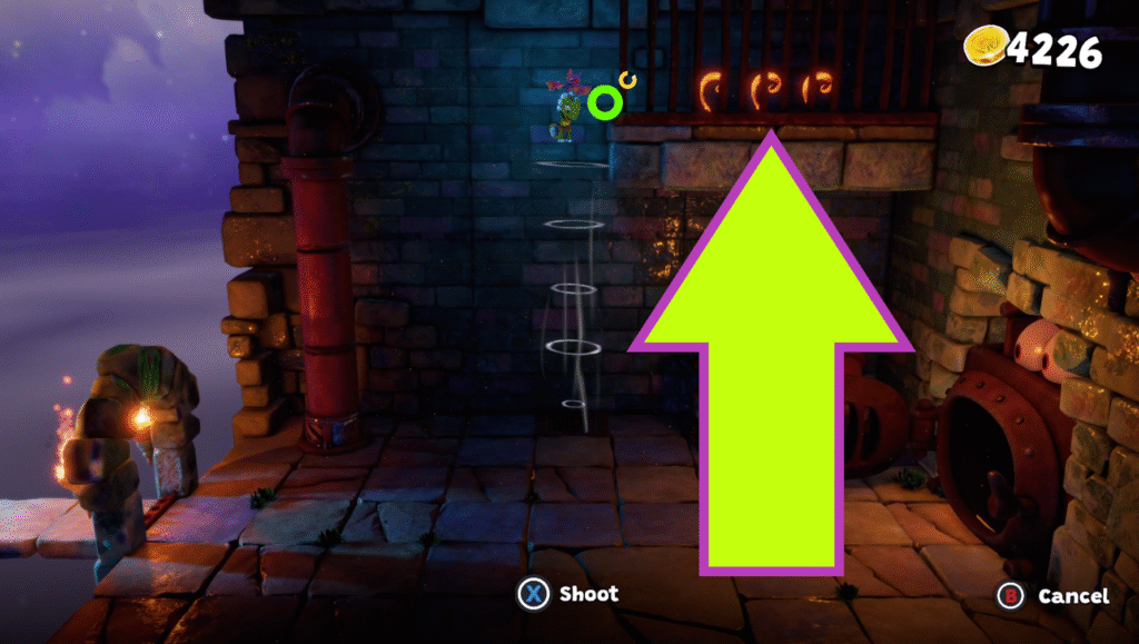Use the invisible platform in this room to take you up to another door, and you’ll find the next four Quills on your path without any trouble.