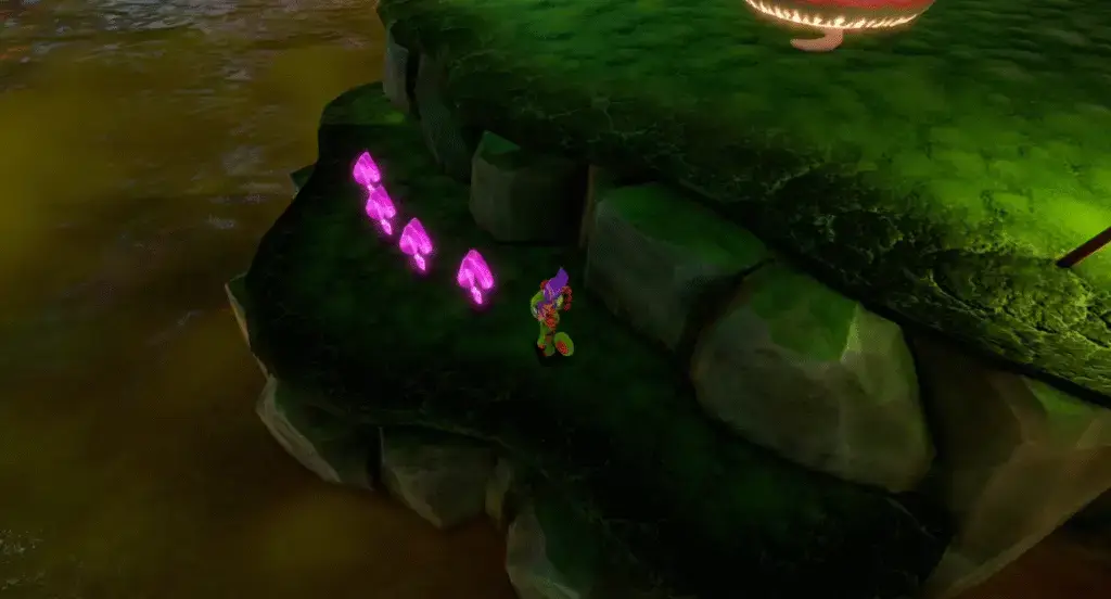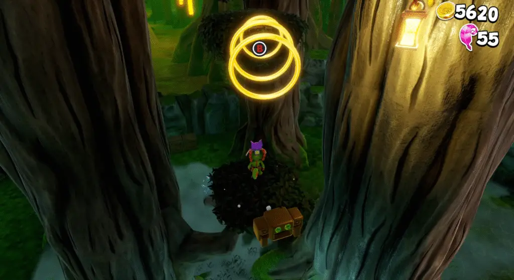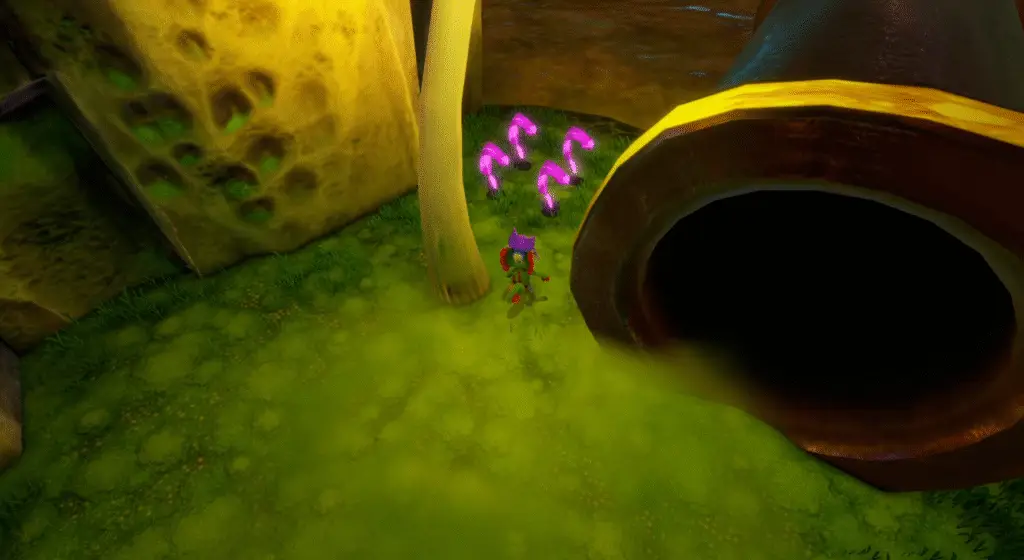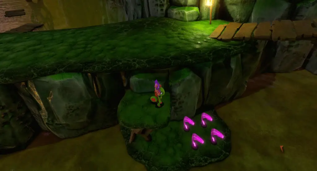 Near where you found the previous Quills is a block you need to use Yooka’s tongue to pull down. This clears a path to three more Quills.