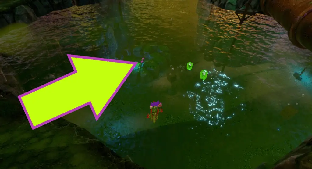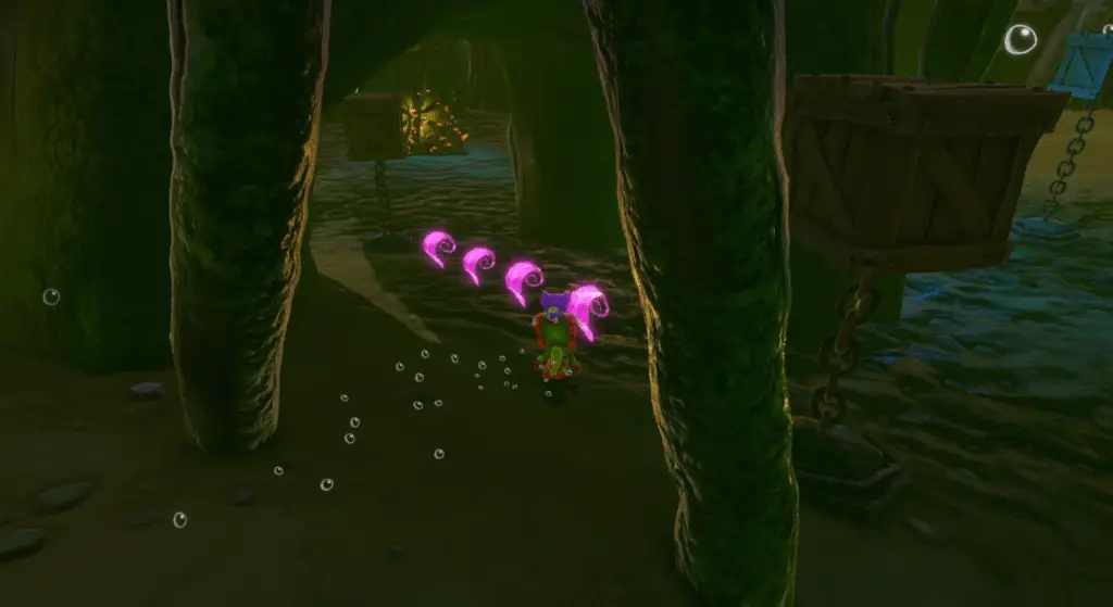 You’ll need to get the Moodymaze Marsh Mollycool to make use of Dr. Puzz’s D.N.Ray machine. Locate a wooden crate that is chained to a round metal object underwater and smash it to find the Mollycool!