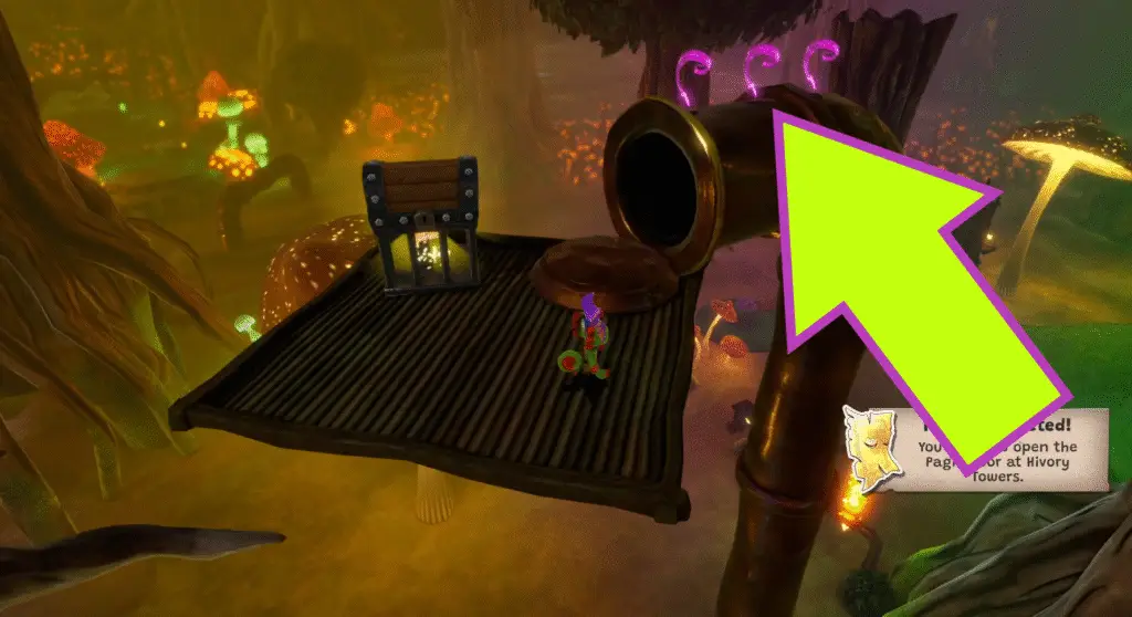 Continue forward, across the rotating wooden platforms, and enter the pipe next to Clara. Search through the mist to find these four Quills, use Laylee’s Sonar ‘Splosion to clear the mist to help.