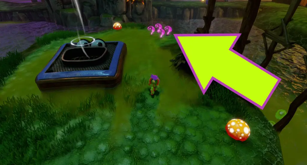 At the base of the tree next to the island with bouncy mushrooms is another mushroom with another four Quills to grab.