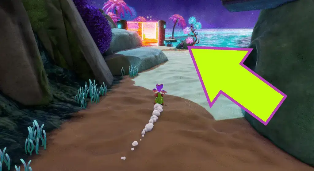 From the Mark fast travel point that you find shortly after beginning Tribalstack Tropics, go left to Rampo’s temple and head to the rear side of the structure. There is a hole in the wall, with some wooden crates hiding something shiny behind them. Glide over and smash the crates to find the first Pirate Treasure!