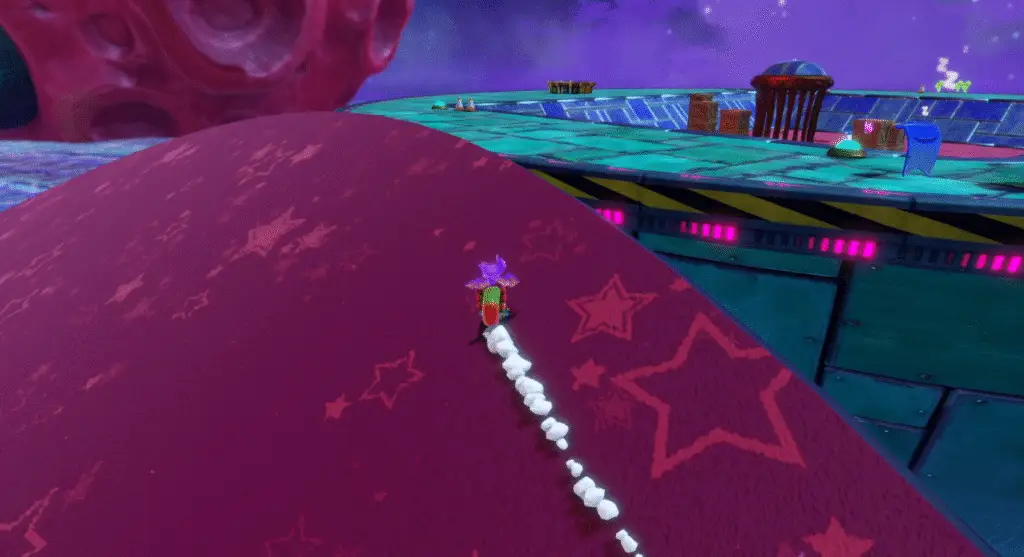 To reach the Pirate Treasure in Galleon Galaxy, you need to have helped Schell blow up the Blamphibian homeworld. Roll up the ramp that was the planet’s orbit to reach a platform with a Mark fast travel point (or warp here if you have already activated it).