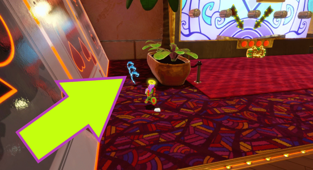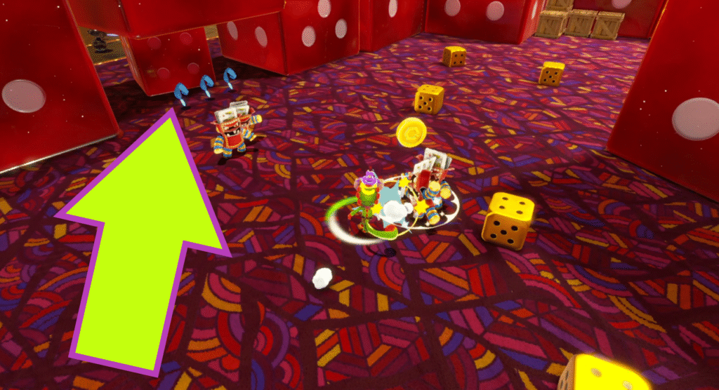 The next four Quills are found on a large red dice behind Rextro’s arcade machine, further along the path.