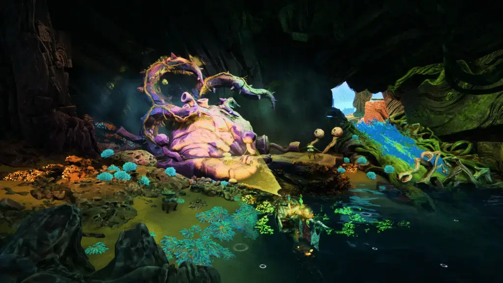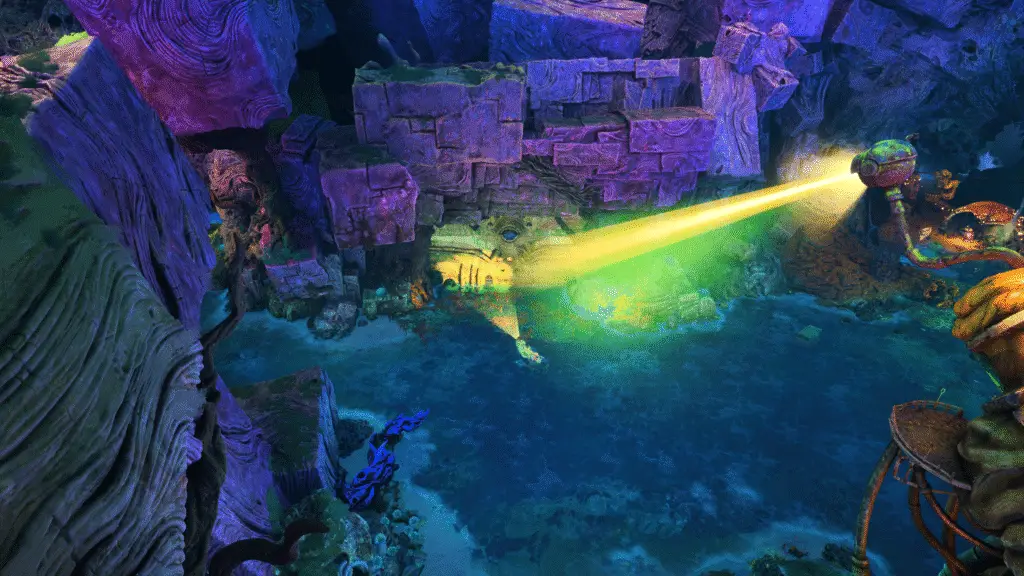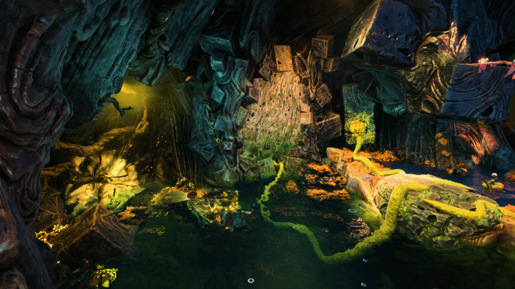Once inside, look for the flower and use focus lamp (RT) to power it up, and get it to build the statue. And that’s it! Job well done!