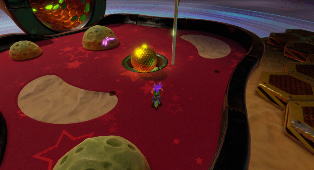 To get this Pagie you need to play the gold minigame and successfully get a golf ball in the hole at the course’s end. Hit the button at the start to create a giant golf ball and get it rolling. It will then split into many smaller balls, which will roll down the slope, where you will find a Bomb Plant at the bottom.