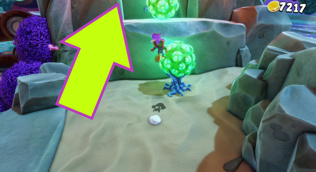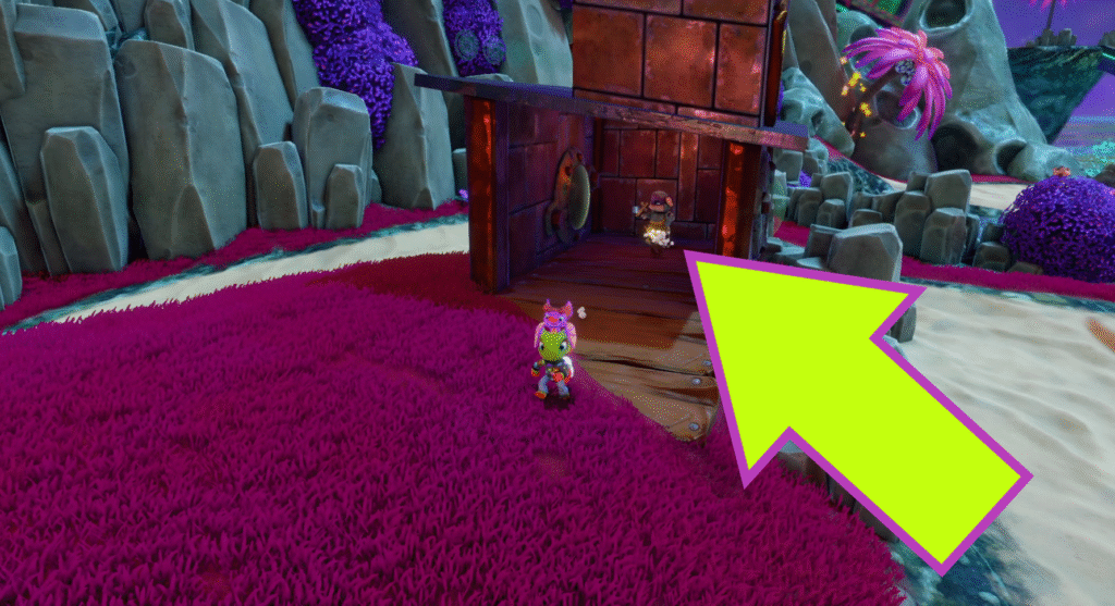 Go inside and Buddy Slam the buttons to destroy the shockwave minions to progress through each room. At the end, once all of the enemies are defeated, a Pagie is yours.