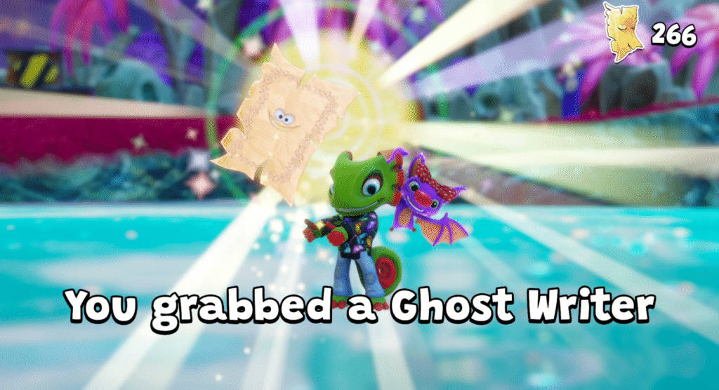 If you have been following this guide, you have now captured all five Ghost Writers. A trio of Pagies will appear over the Ghost Writer plinth that is found on an elevated platform you can reach once you have helped the NPC Schell with her mission (we cover this shortly).