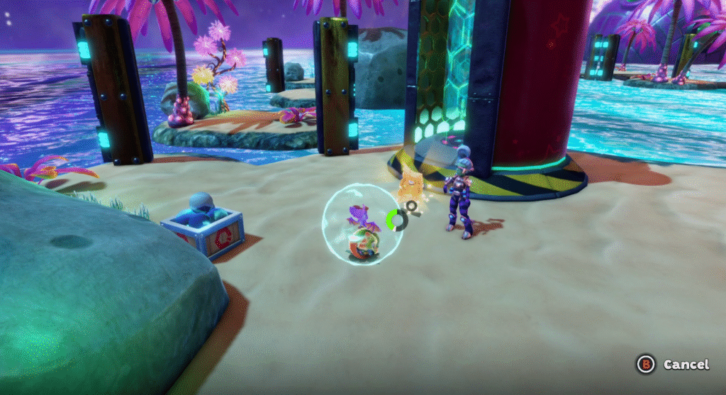 Carry on going up inside the transparent tower to find the Mollycool for this level. We’ll need this later for using Dr. Puzz’s D.N.Ray machine.