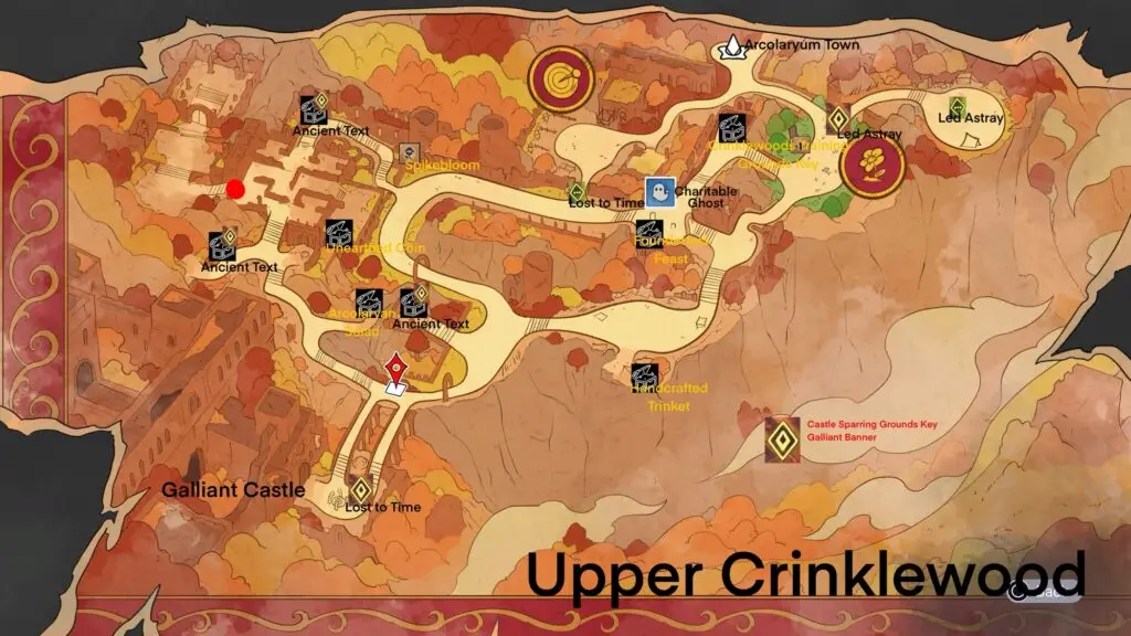 Exiting through the northern double doors of Galliant Castle, you will arrive at the last hurdle keeping you from Arcolaryum Town, Upper Crinklewood.