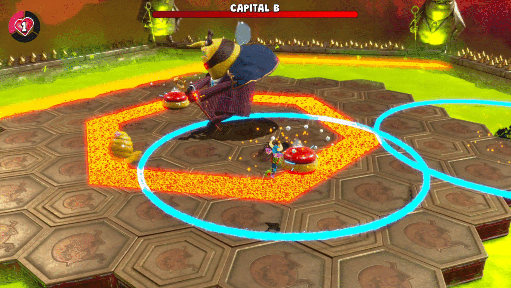 Continue through the game until you have the cutscene with Capital B and Dr. Quack. Look past the giant gold statue of Capital B to spot a barrel near a furnace. Hit the barrel to reveal a Water Plant you use Yooka’s tongue on to gain a special ability. With the water state, go over and spray water on the fire to put it out and reveal a Pagie.