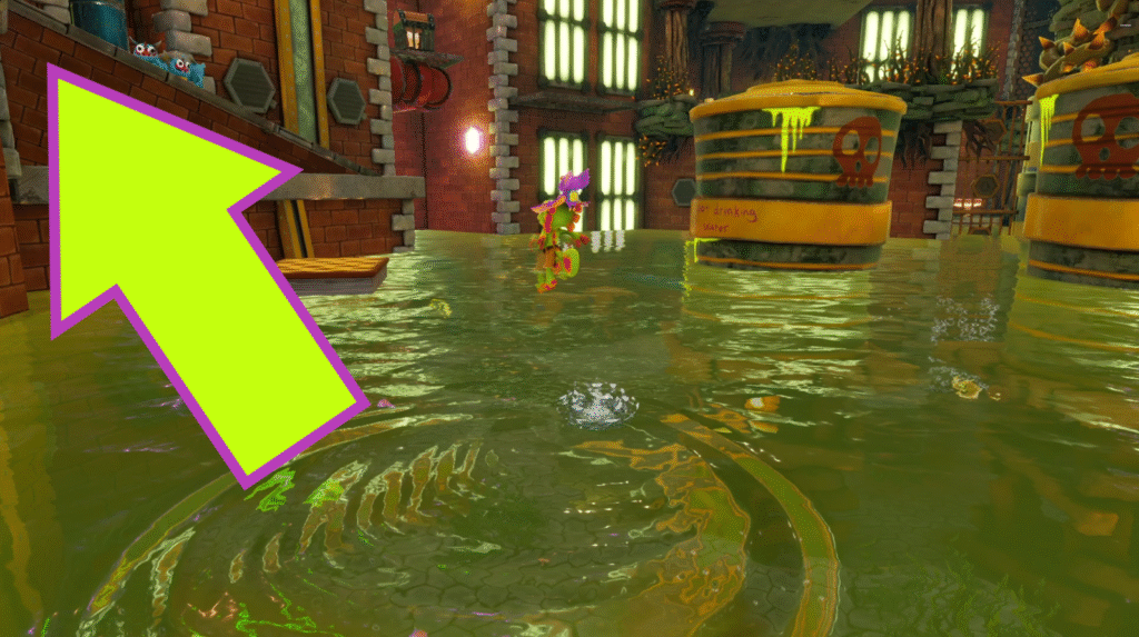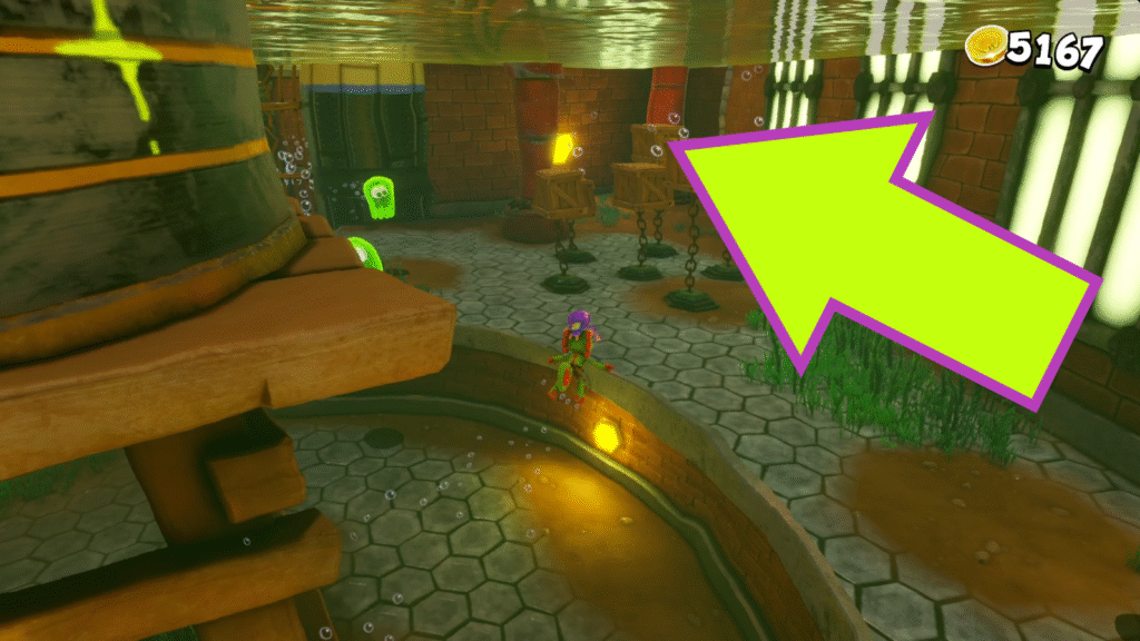 Look for a cluster of wooden crates chained to the bottom of the pool and smash the glittering one to find another Pagie.