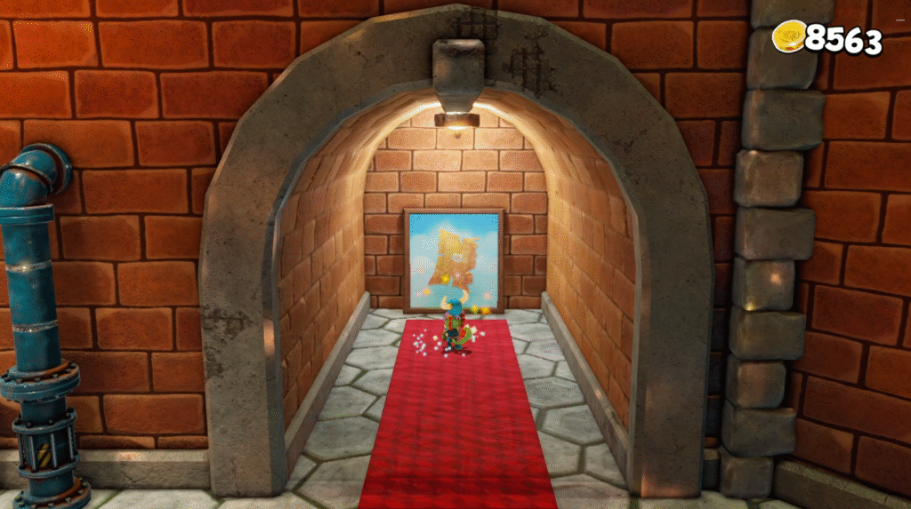 The next bunch of Pagies is found past the first Pagie door, which leads to the Glitterglaze Glacier grand tome. As soon as you enter the new area, hit the wall with an arch in it to reveal a secret corridor with a Pagie portrait at the end. Hit it for a Pagie.